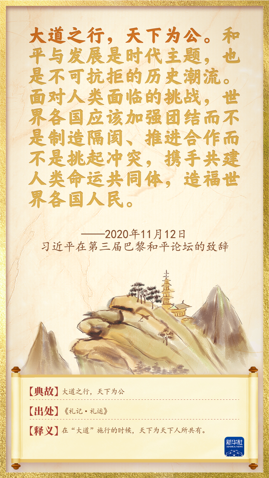 “這個世界,各國相互聯(lián)系、相互依存的程度空前加深,人類生活在同一個地球村里,生活在歷史和現(xiàn)實交匯的同一個時空里,越來越成為你中有我、我中有你的命運共同體。”2013年3月23日,習近平擔任中國國家主席后首訪俄羅斯,提出了人類命運共同體的重要理念。十年間,習近平總書記在不同場合反復強調(diào)“天下一家”、命運與共,主張各國和衷共濟,攜手創(chuàng)造世界的美好未來。我們梳理了總書記關(guān)于命運與共的用典,一起來學習。
