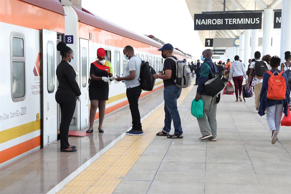 2021年11月17日,乘客在肯尼亞蒙內鐵路內羅畢站排隊檢票上車。新華社記者 董江輝 攝