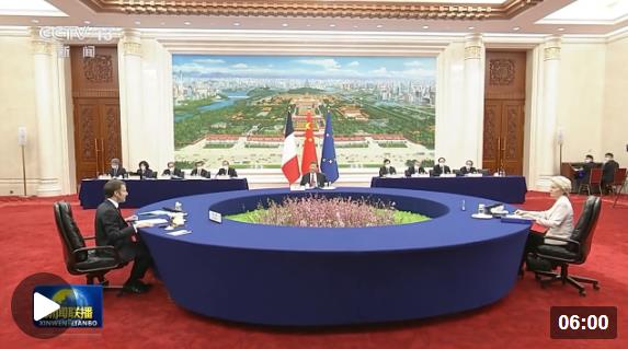 4月6日下午,習近平主席會見了馮德萊恩,并同她和法國總統(tǒng)馬克龍一起舉行了中法歐三方會晤。