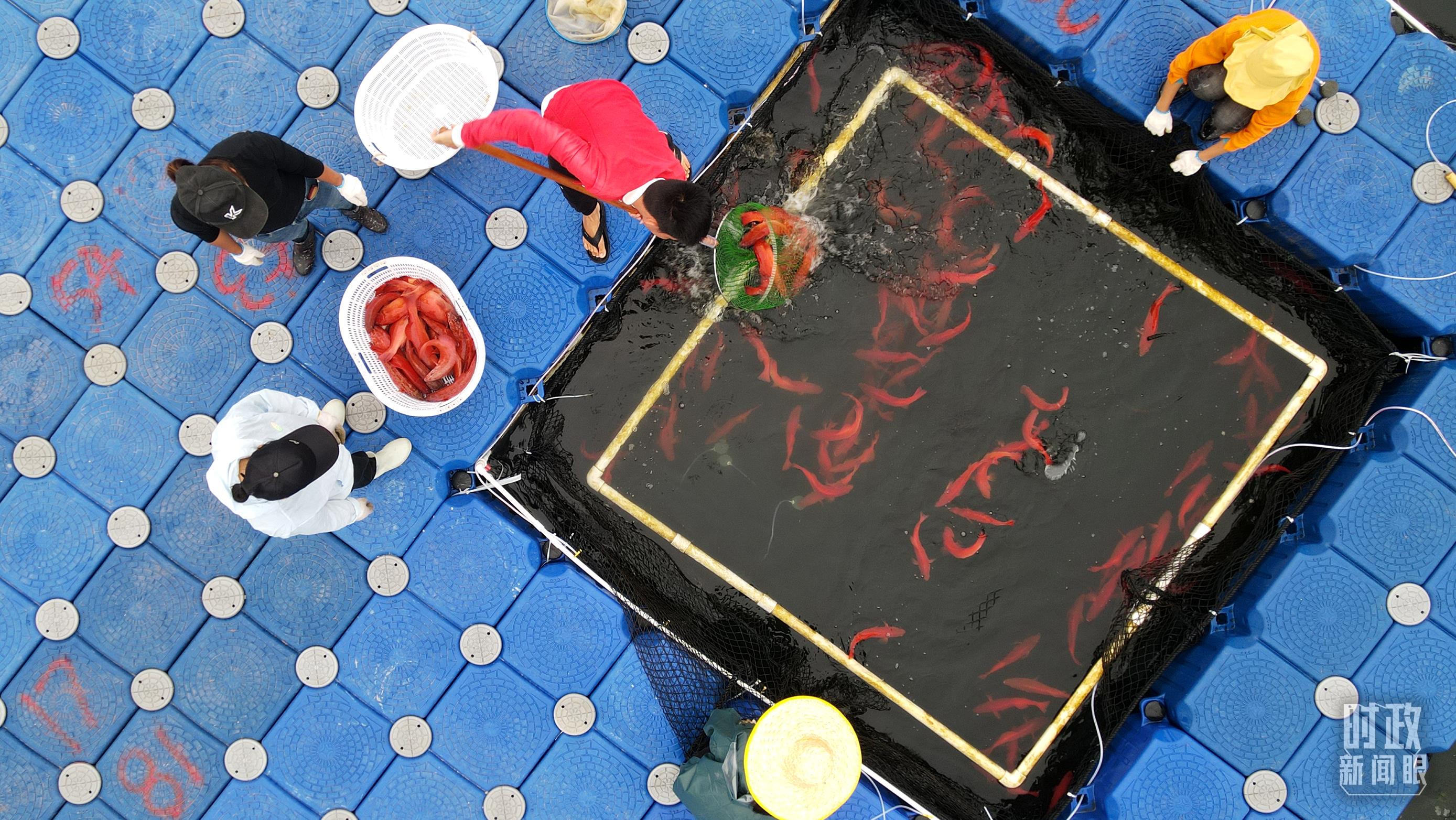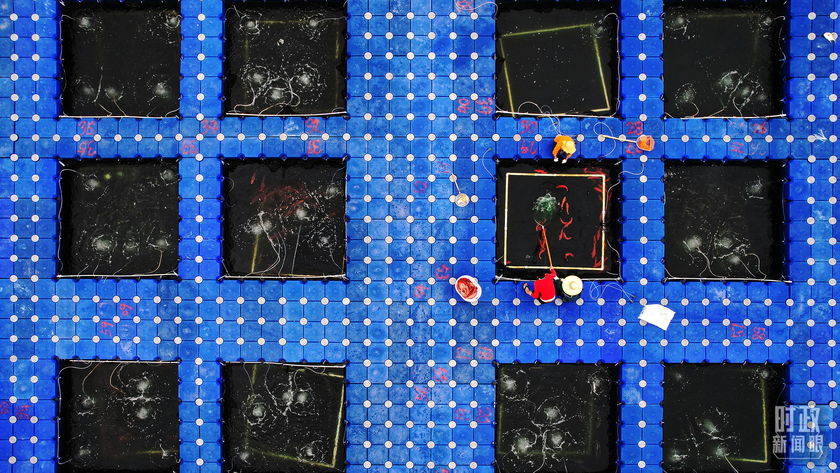 △浮筒式池塘網(wǎng)箱。(總臺(tái)央視記者劉琦拍攝)