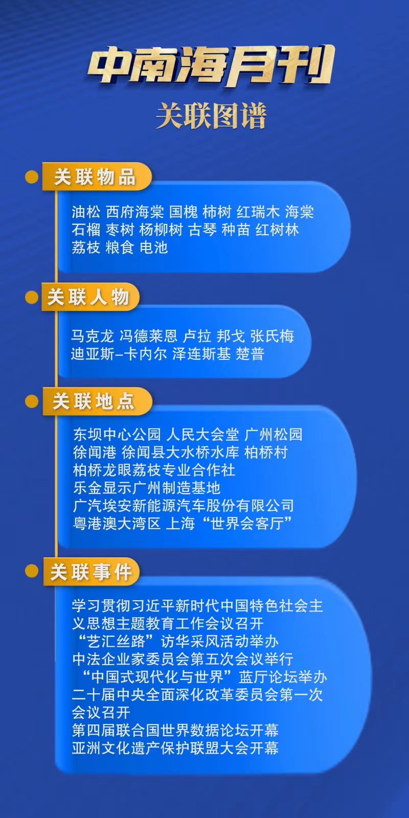 關(guān)聯(lián)地點中的徐聞港、柏橋村等指向總書記的考察地。今年是全面貫徹黨的二十大精神開局之年,習(xí)近平總書記兩會后首次地方考察選擇了廣東。他對廣東的干部群眾說:“廣東是一個窗口。到廣東來看一看,了解一下黨的二十大以來都有哪些新進展新氣象。”