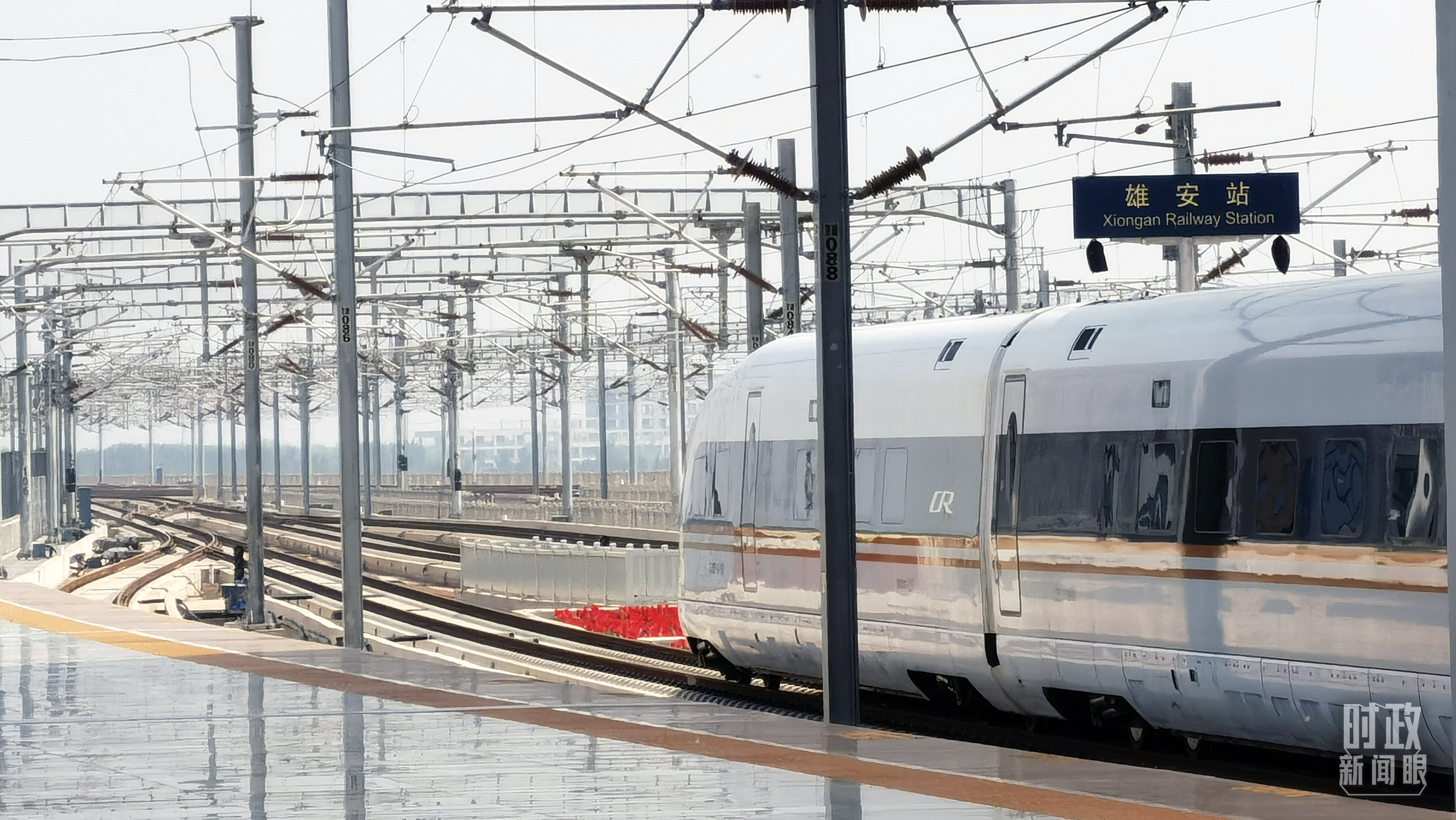 △復(fù)興號(hào)列車駛?cè)胄郯舱?。(總臺(tái)央視記者郭鴻拍攝)