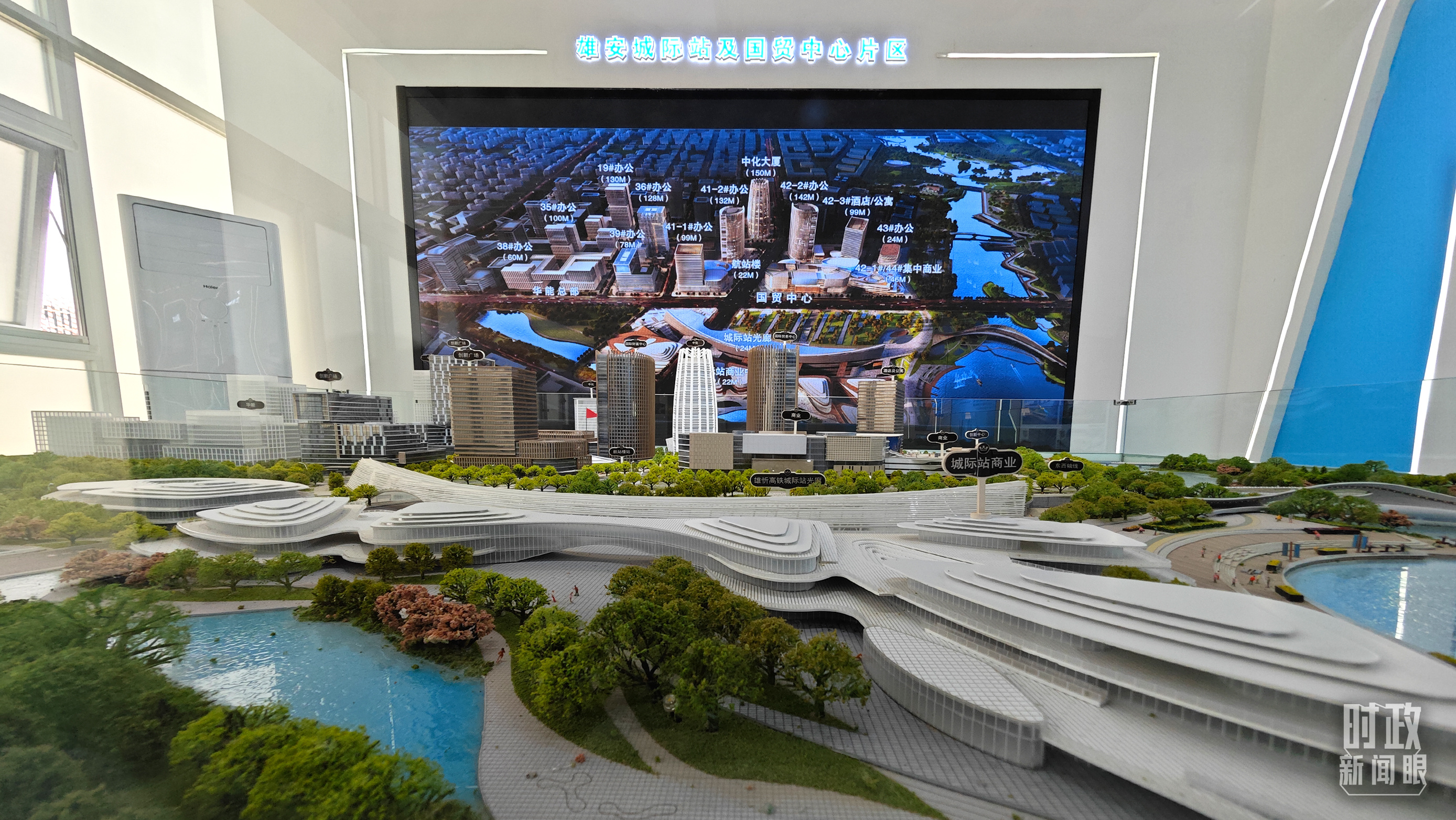 △雄安城際站及國(guó)貿(mào)中心項(xiàng)目模型。(總臺(tái)央視記者彭漢明拍攝)