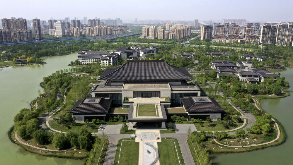 位于西安浐灞生態(tài)區(qū)的西安國際會議中心(4月16日攝,無人機照片)。新華社記者 劉瀟 攝