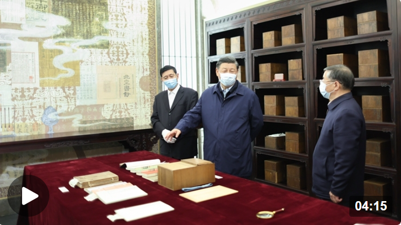 習(xí)近平總書記在考察時強調(diào),建設(shè)中國國家版本館是我非常關(guān)注、親自批準(zhǔn)的項目,初心宗旨是在我們這個歷史階段,把自古以來能收集到的典籍資料收集全、保護好,把世界上唯一沒有中斷的文明繼續(xù)傳承下去。