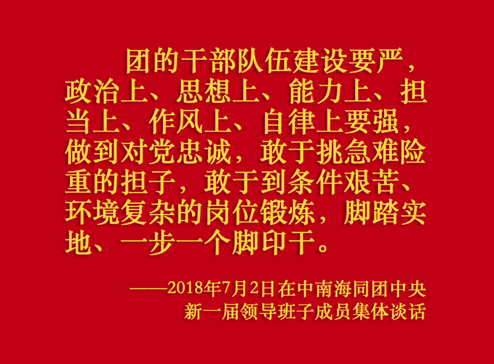6月26日,中共中央總書記、國家主席、中央軍委主席習(xí)近平在中南海同團(tuán)中央新一屆領(lǐng)導(dǎo)班子成員集體談話并發(fā)表重要講話。