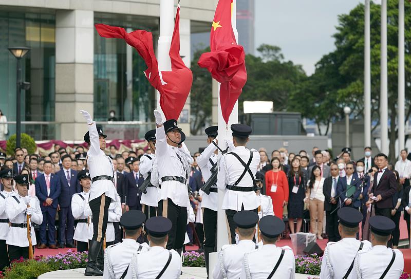 △2023年7月1日,香港特別行政區(qū)政府在金紫荊廣場(chǎng)舉行升旗儀式,慶祝香港回歸祖國(guó)26周年。