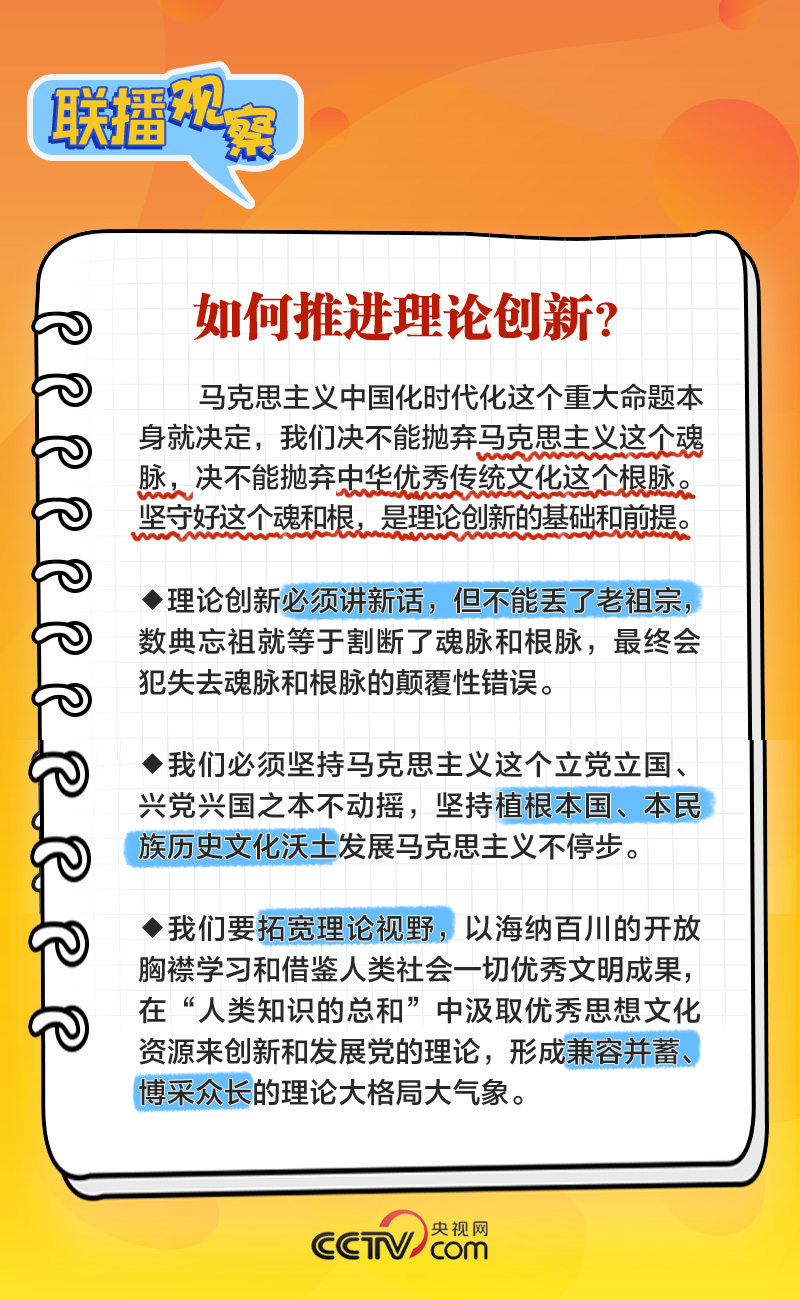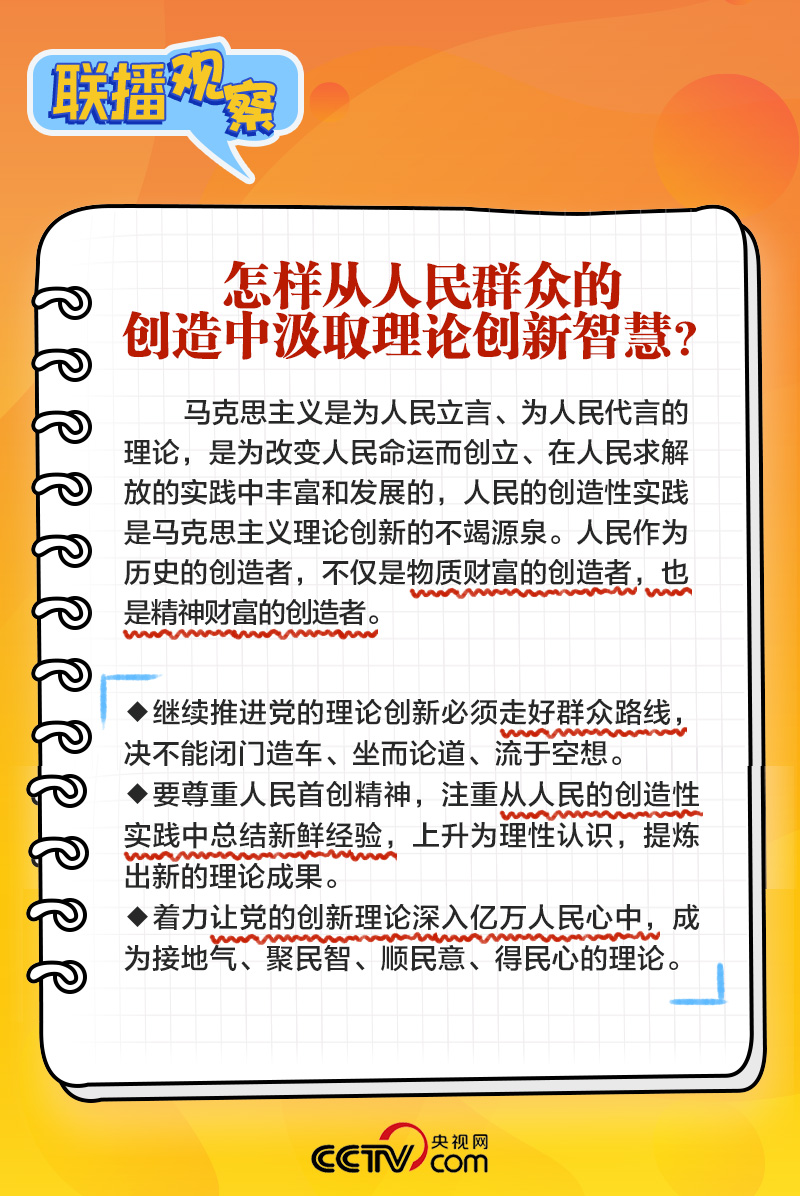 如何開辟馬克思主義中國化時代化新境界?理論創(chuàng)新的基礎(chǔ)和前提是什么?怎樣從人民群眾的創(chuàng)造中汲取理論創(chuàng)新智慧?央視網(wǎng)《聯(lián)播+》梳理總書記主持學習時的講話,與您一起學習。