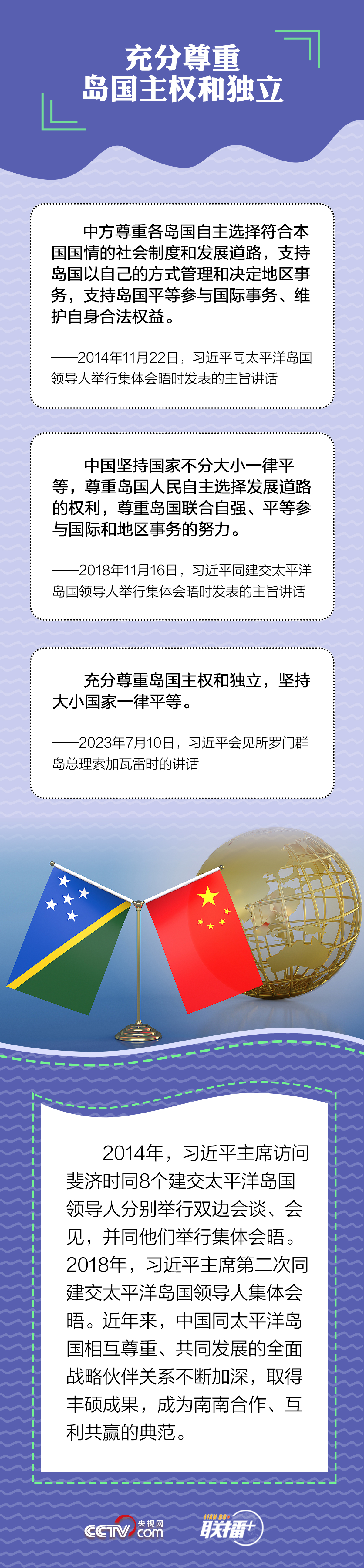 聯(lián)播+7月10日,習(xí)近平主席在人民大會(huì)堂會(huì)見來華進(jìn)行正式訪問的所羅門群島總理索加瓦雷。習(xí)主席指出,中國和太平洋島國都是發(fā)展中國家,應(yīng)該在南南合作框架內(nèi)加強(qiáng)互幫互助,并特別強(qiáng)調(diào)了“四個(gè)充分尊重”。