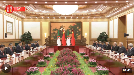 習(xí)近平指出,今年是中阿建交65周年。65年前,反對(duì)帝國主義和殖民主義、爭(zhēng)取民族獨(dú)立解放的共同事業(yè)使我們兩國走到一起。65年來,中國和阿爾及利亞始終患難與共、守望相助,兩國的友誼歷久彌堅(jiān)。新征程上,中方愿同阿方一道努力,賡續(xù)傳統(tǒng)友誼,加強(qiáng)戰(zhàn)略溝通,深化交流合作,推動(dòng)中阿全面戰(zhàn)略伙伴關(guān)系行穩(wěn)致遠(yuǎn)。