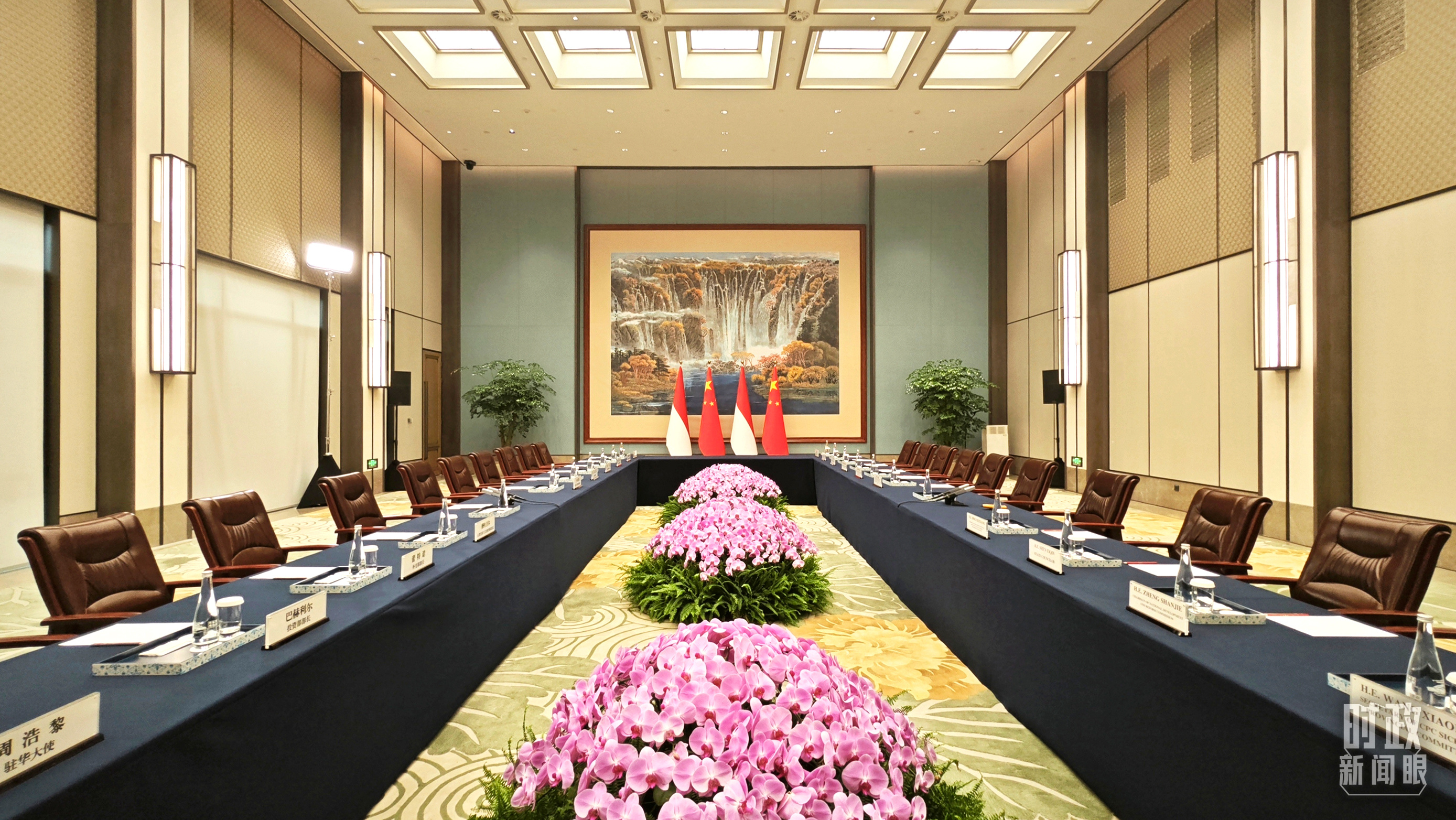 △會見現(xiàn)場的中印尼兩國國旗。(總臺央視記者張垚拍攝)