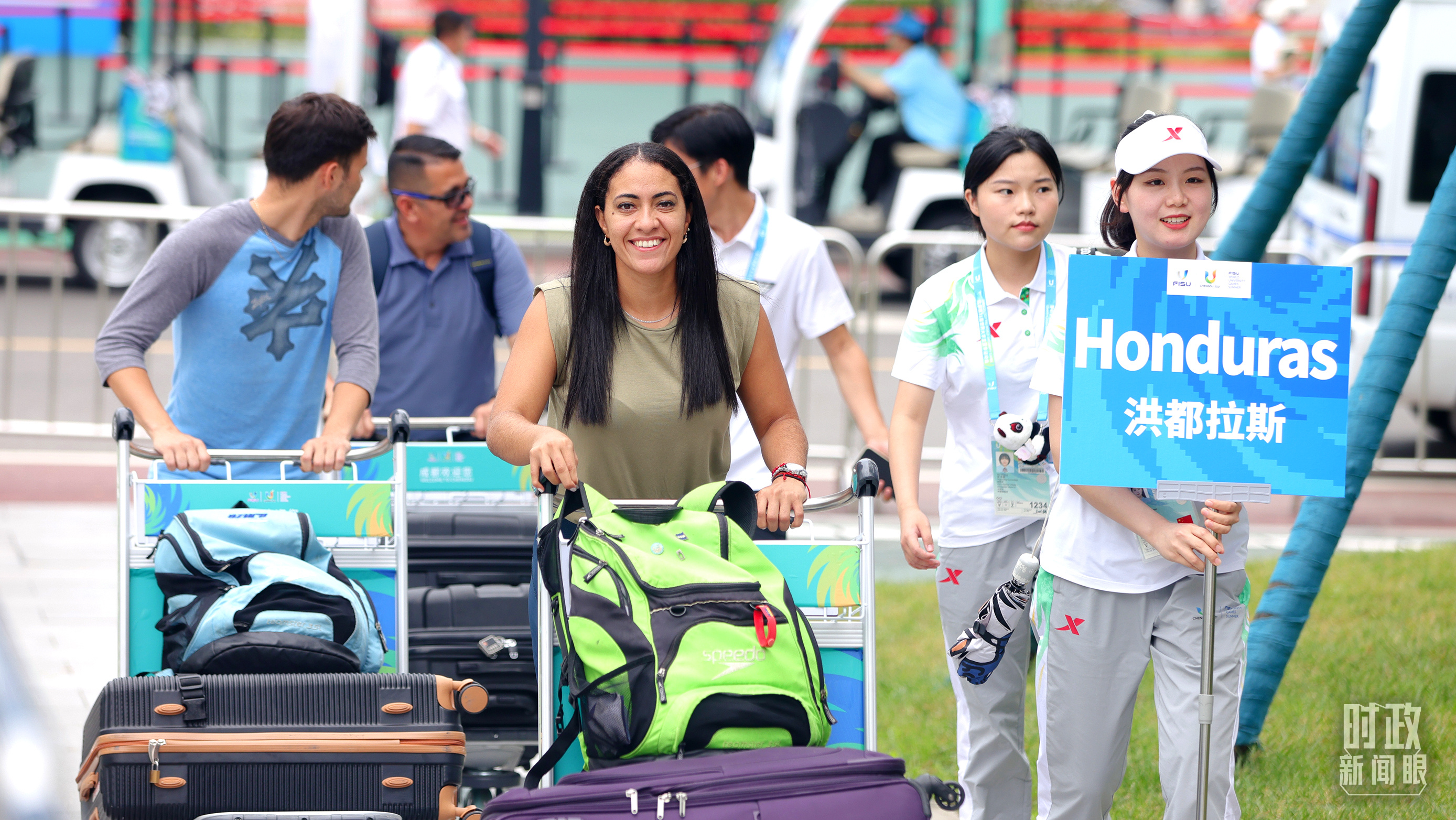△各國代表團(tuán)成員相繼抵達(dá)成都大運(yùn)村。(總臺央視記者魏幫軍拍攝)