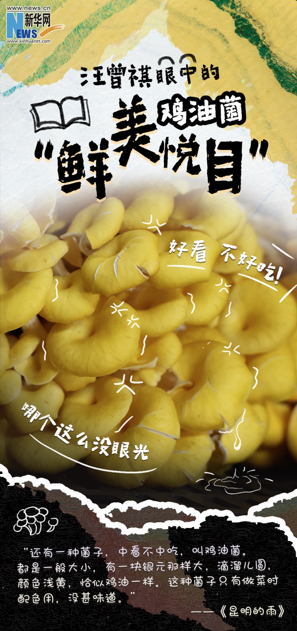 色彩是食物的殺手锏,暖黃色常常激起人們的食欲。雞油菌天然的色彩,很難讓人不聯(lián)想到云南的明媚陽光。汪曾祺的美食散文中常常蘊含著美食文化的哲思,他用雞油菌作為菜品的配色,也頗有些食物特有色彩美學(xué)的雅趣。