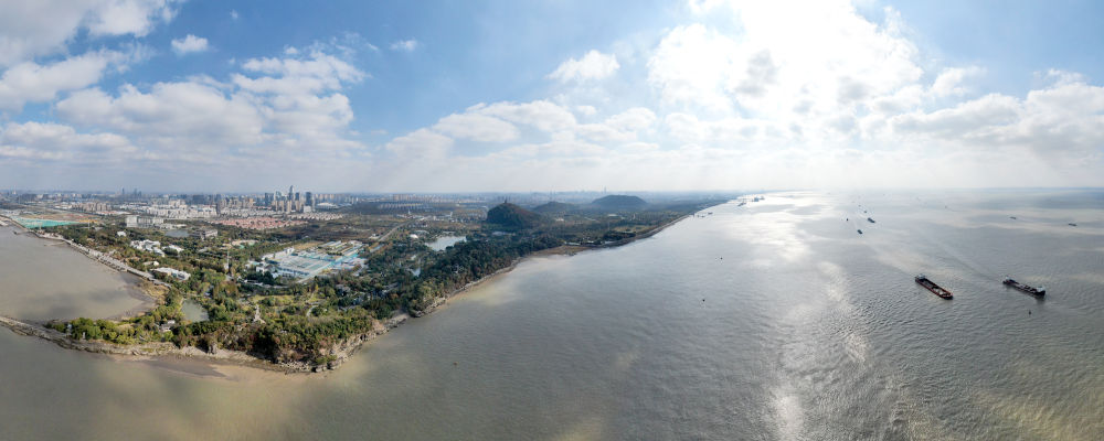 這是2020年11月13日拍攝的江蘇省南通市五山及沿江地區(qū)景色(無(wú)人機(jī)全景照片)。新華社記者 季春鵬 攝