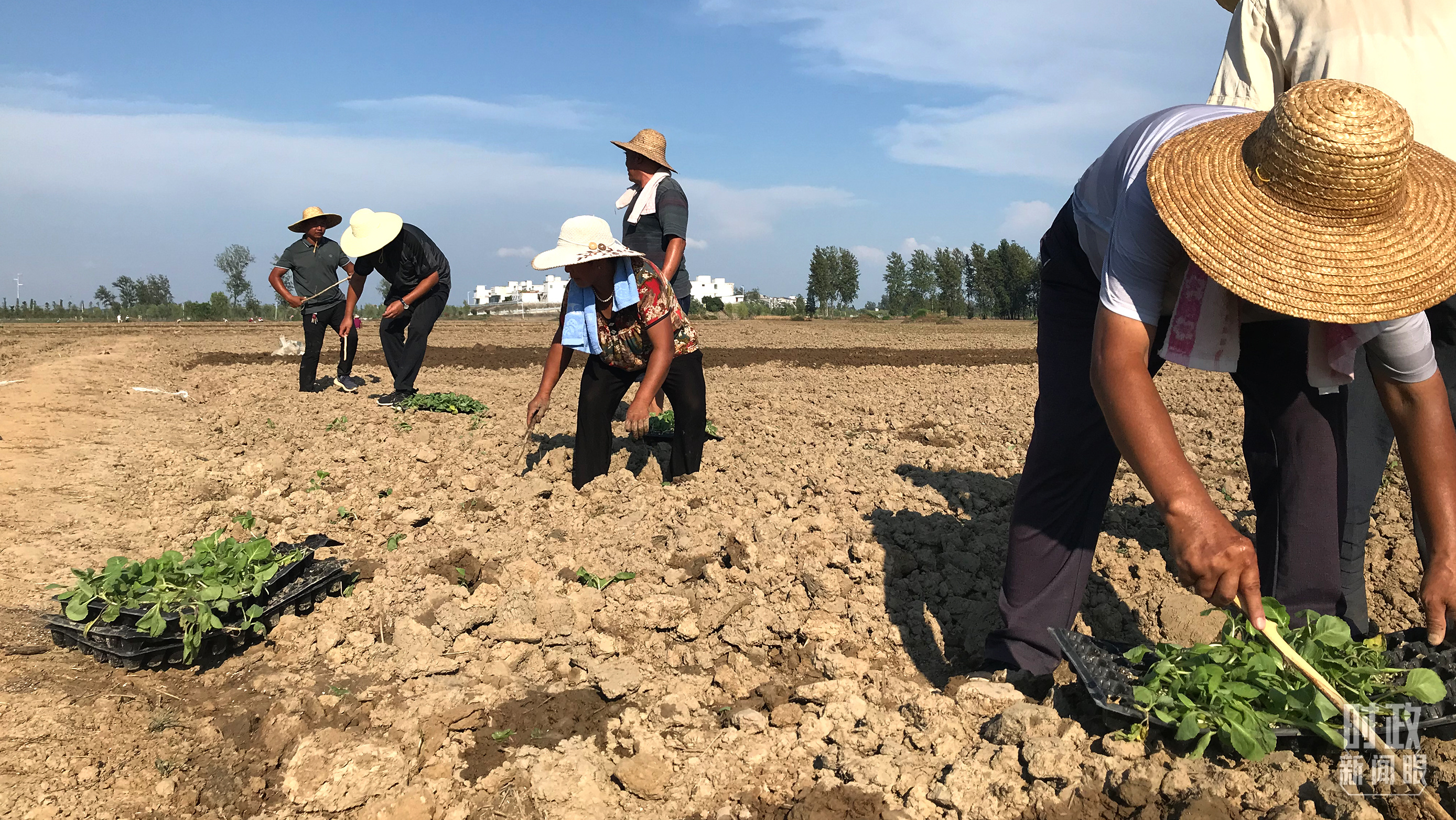△當(dāng)年洪水退去后,安徽省蒙洼蓄洪區(qū)的村民正在補(bǔ)種蔬菜。(總臺央視記者石偉明拍攝)