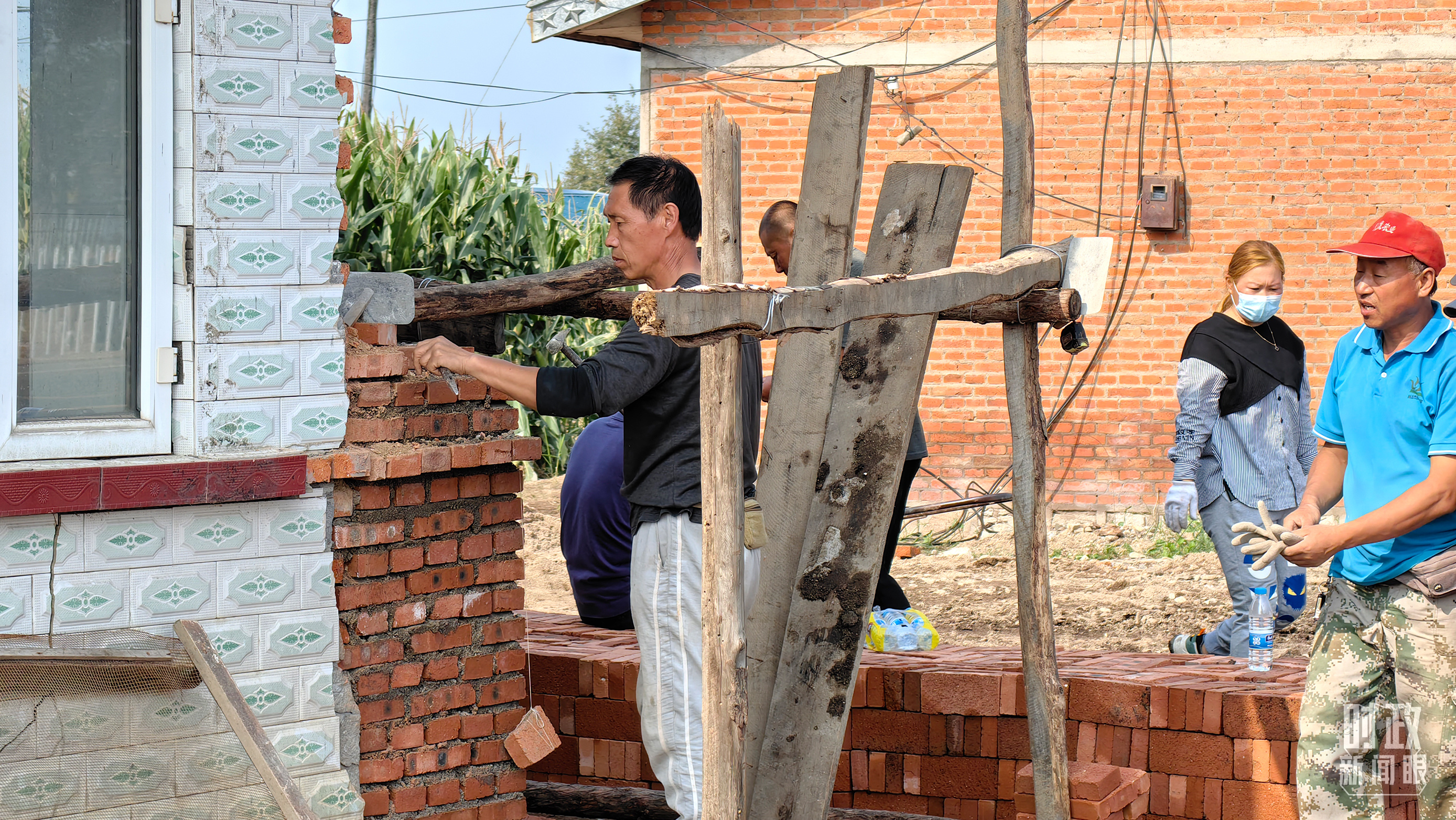△龍王廟村內(nèi),村民正在修繕在洪水中受損的房屋。(總臺央廣記者潘毅拍攝)