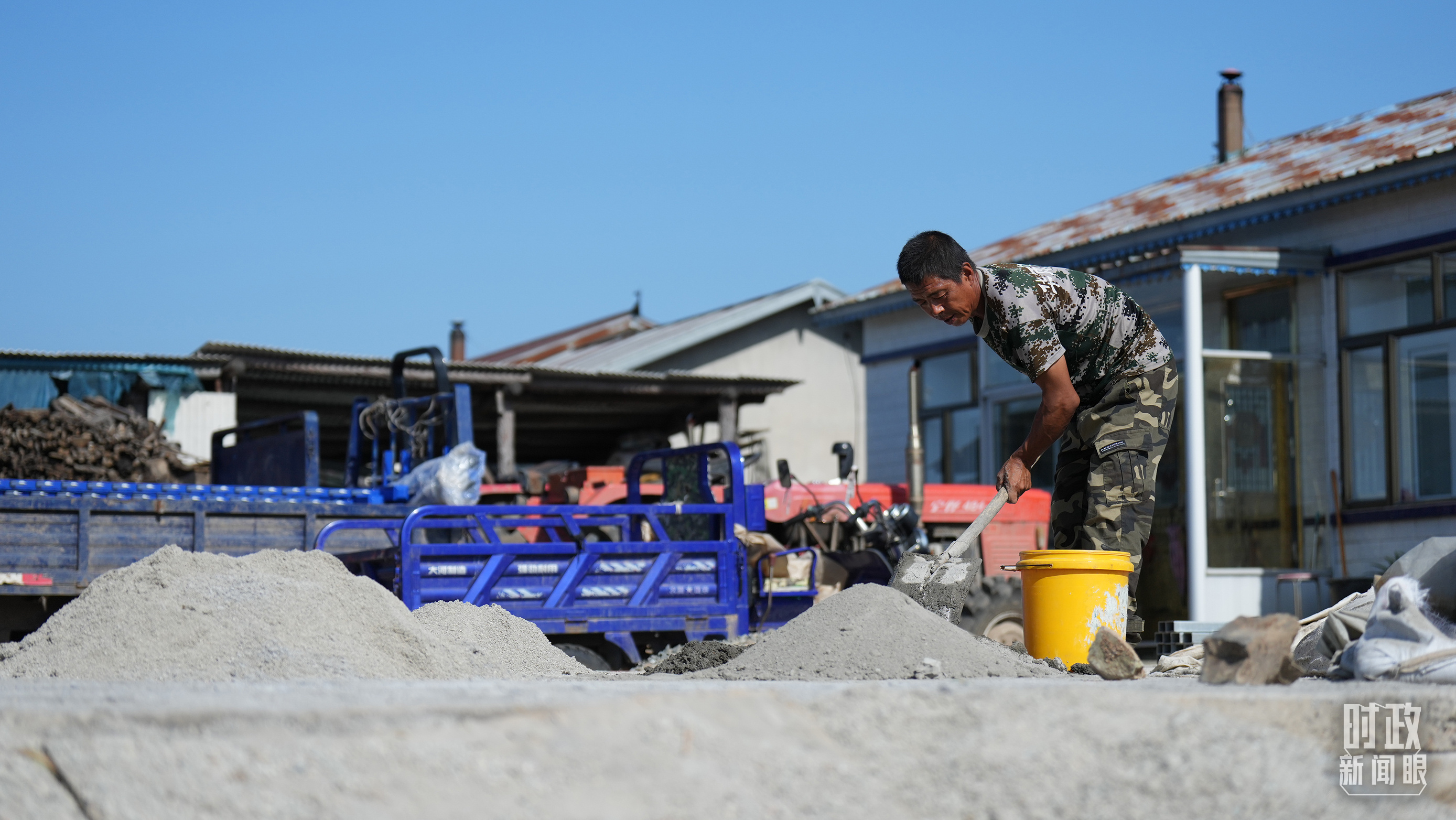 △村民正在修繕被損的房屋。(總臺(tái)央視記者薛冠南拍攝)