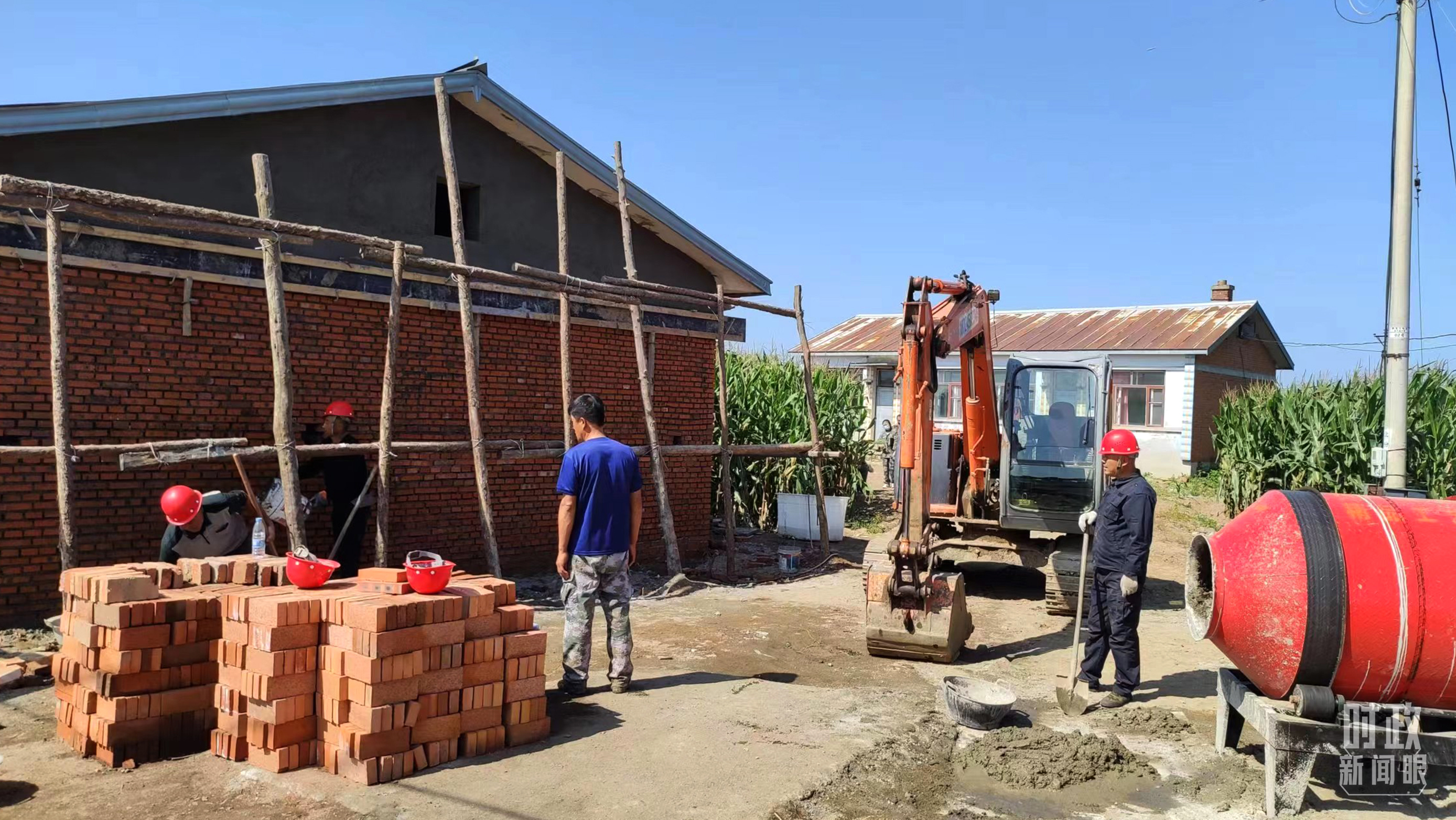 △村民正在修繕被損的房屋。(總臺央視記者薛冠南拍攝)