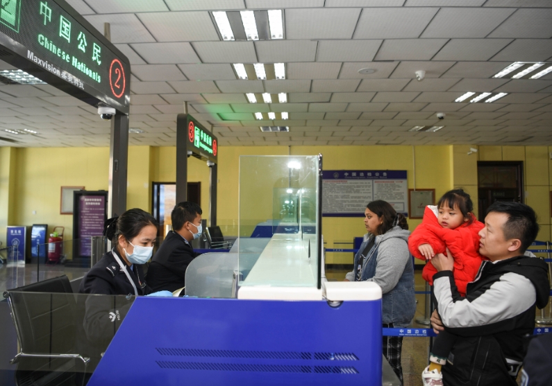 2023年8月29日,準備前往巴基斯坦探親的跨國夫婦鄭銀果、索娜帶著女兒辦理通關手續(xù)。