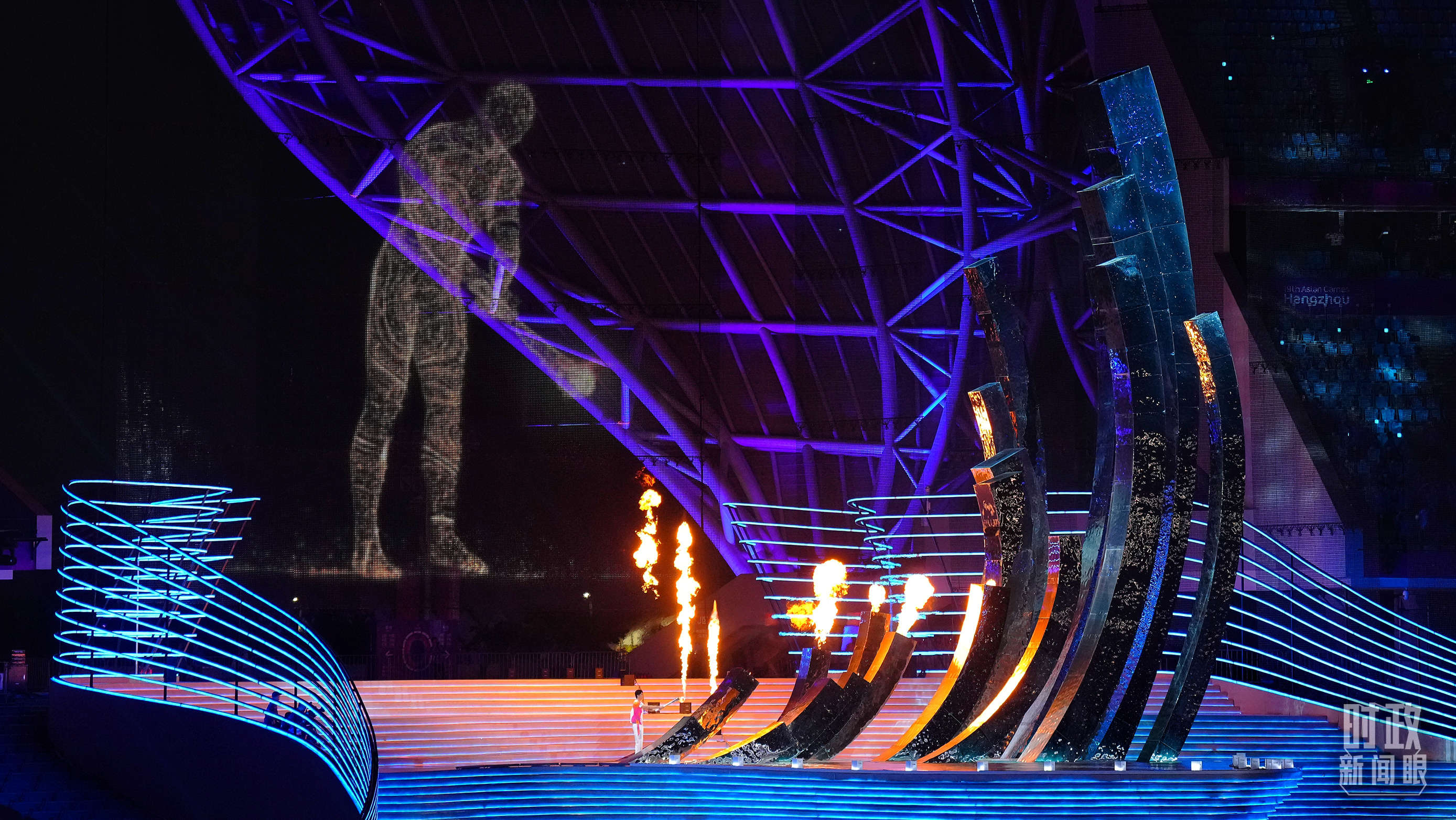 當晚的主火炬點燃儀式,由運動員火炬手與“數(shù)字火炬手”一道點燃主火炬塔,這是亞運史上首個數(shù)字點火儀式。杭州亞運會開幕式還取消燃放實體煙花,改用“數(shù)字”煙花替代。