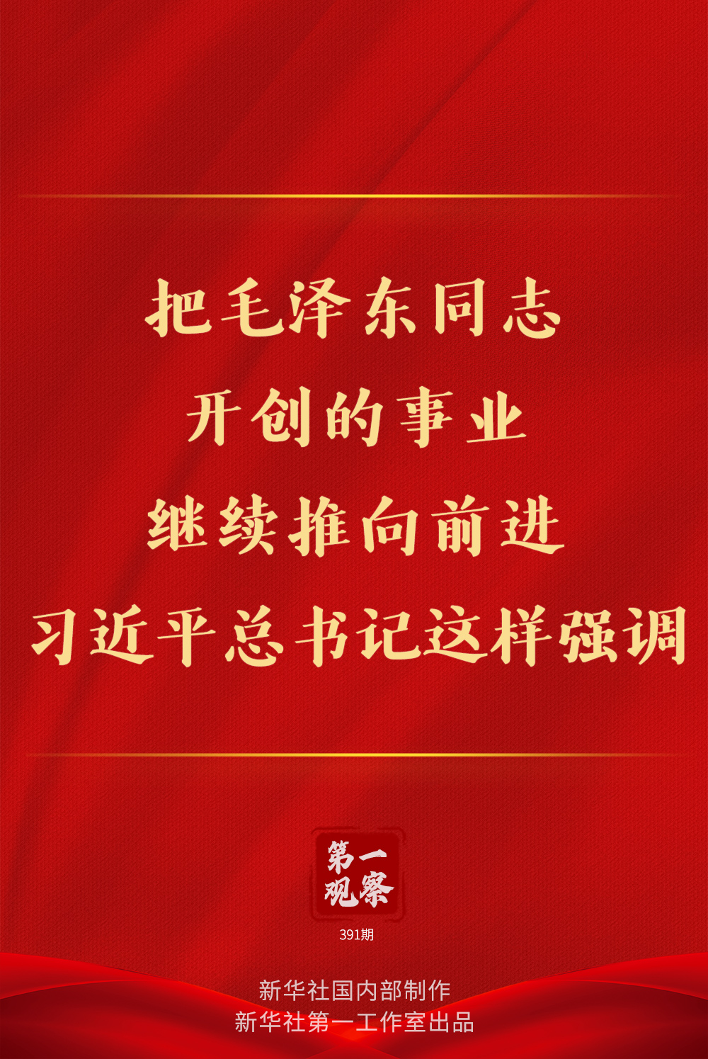 今天,我們對(duì)毛澤東同志的最好紀(jì)念,就是把他開(kāi)創(chuàng)的事業(yè)繼續(xù)推向前進(jìn),在新起點(diǎn)上書(shū)寫(xiě)新的時(shí)代華章。