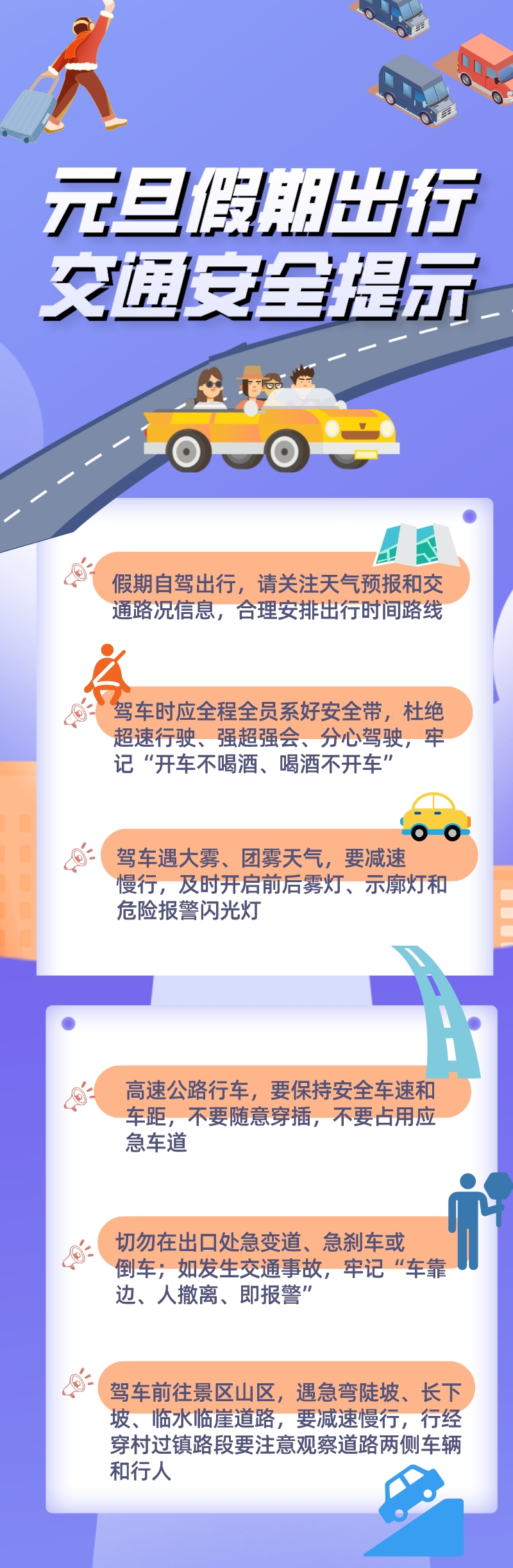 2024年元旦假期即將來臨,在這個傳統(tǒng)的節(jié)日里,很多人都會選擇親友歡聚、外出旅游、放松身心……如何安全又健康地享受假期?下面這些提示一起了解下。