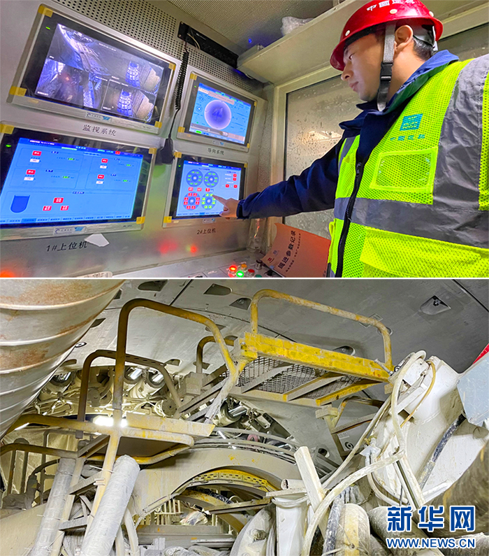 1月3日,在西安地鐵15號線一期工程長安廣場站建設(shè)工地上,盾構(gòu)機司機吳桃操作盾構(gòu)機作業(yè)。今年39歲的吳桃是江蘇淮安人,他說自己當(dāng)盾構(gòu)機司機已經(jīng)20年了,很喜歡這份工作。“希望過年能回家和家人團(tuán)聚,如果趕工期就堅守崗位。”吳桃說。新華網(wǎng) 楊喜龍 攝(拼版照片)