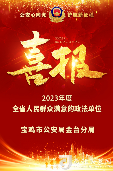 西部決策網(wǎng)訊(記者帥華鋒 通訊員 楊曉毅)1月21日,從省委政法工作會(huì)議上傳來(lái)喜訊,寶雞市金臺(tái)公安分局榮獲“全省人民群眾滿(mǎn)意的政法單位”,這是全市唯一獲此殊榮的縣(區(qū))級(jí)公安機(jī)關(guān)。