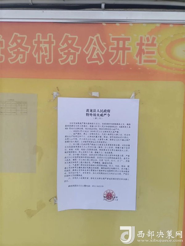 西部決策網(wǎng)訊(記者馬瑞 通訊員 賀金霞) “為有效預(yù)防和撲救森林火災(zāi),保障人民生命財產(chǎn)安全,保護(hù)森林資源,維護(hù)生態(tài)安全,根據(jù)《中華人民共和國森林法》,制定本條例。......”在黃龍縣崾崄鄉(xiāng)的各村委會,你都可以看到各防火宣傳點(diǎn)以及隊部的宣傳喇叭在開展森林防火宣傳。同時,防火巡查員們積極上路,遇到車輛及時進(jìn)行宣傳叮囑。這是崾崄鄉(xiāng)近期開展防火工作的一個縮影。在近期溫度升高,林下積雪消融完全,防火等級居高不下的關(guān)鍵時刻,崾崄鄉(xiāng)堅持狠抓防火,在全鄉(xiāng)構(gòu)筑起森林防火的堅實屏障。