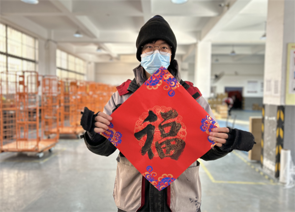 活動(dòng)中書法家們通過(guò)寫春聯(lián)、寫福字的方式,為辛勤奮斗、守護(hù)美好生活“最后一公里”的一線快遞小哥們送來(lái)有溫度、有分量的“文化年貨”,送上節(jié)日的祝福和問候。讓春節(jié)堅(jiān)守崗位的快遞小哥們?cè)诠ぷ鞯馗惺艿絹?lái)自社會(huì)的關(guān)心關(guān)愛和濃濃的節(jié)日氛圍;讓返鄉(xiāng)過(guò)年的小哥們把書法家們親筆書寫的福字和福氣帶回家,把溫暖快遞回家。