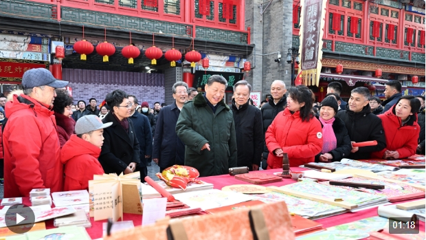 春節(jié)前夕,習(xí)近平總書記在天津考察調(diào)研,看望慰問基層干部群眾。2月1日上午,他首先來到西青區(qū)辛口鎮(zhèn)第六埠村,實(shí)地了解去年洪澇災(zāi)害后當(dāng)?shù)剞r(nóng)業(yè)生產(chǎn)恢復(fù)等情況,看望受災(zāi)群眾。當(dāng)天下午,他來到天津古文化街,察看節(jié)日市場(chǎng)供應(yīng)和歷史文化街區(qū)保護(hù)利用等情況。