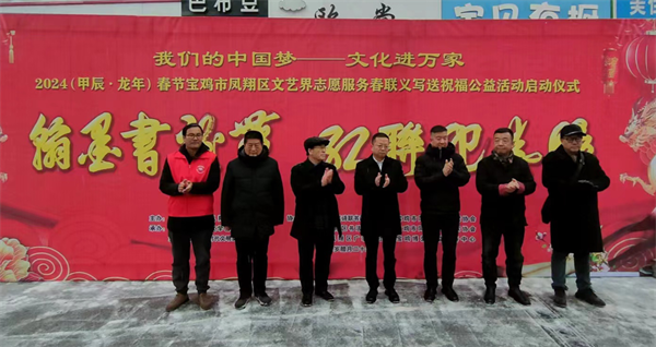 西部決策網(wǎng)訊(記者劉玉 韓宗憲 通訊員 閆芝羽)2月2日,“我們的中國(guó)夢(mèng)·文化進(jìn)萬家”——2024春節(jié)寶雞市鳳翔區(qū)文藝界志愿服務(wù)春聯(lián)義寫送祝福公益活動(dòng)啟動(dòng)儀式在區(qū)政府大門西側(cè)廣場(chǎng)舉行,區(qū)委常委、宣傳部部長(zhǎng)賈亞斌出席活動(dòng)啟動(dòng)儀式。