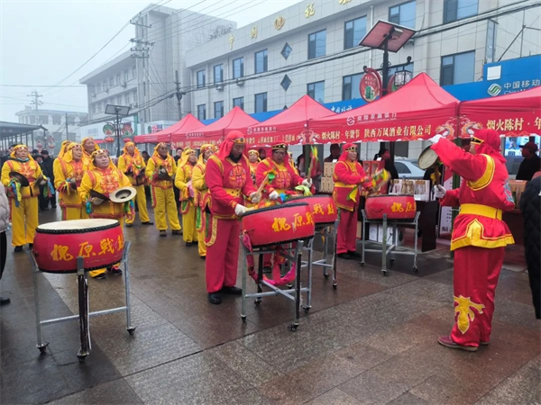 上午九時(shí),活動(dòng)現(xiàn)場(chǎng)人聲鼎沸,熱鬧非凡。省級(jí)非物質(zhì)文化遺產(chǎn)項(xiàng)目“槐原戰(zhàn)鼓”氣勢(shì)恢宏,擂響了煙火陳村促經(jīng)濟(jì),家鄉(xiāng)年貨帶消費(fèi)的新征程。