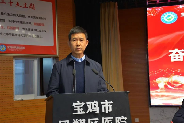鳳翔區(qū)衛(wèi)健局黨組書記、局長張建峰對2023年醫(yī)院的學(xué)科建設(shè)、三級醫(yī)院創(chuàng)建、醫(yī)療服務(wù)能力提升、醫(yī)院綜合管理、重點(diǎn)項(xiàng)目建設(shè)等工作成績給予充分肯定和高度贊揚(yáng),并對醫(yī)院下一步發(fā)展提出了指導(dǎo)性意見。他指出,區(qū)醫(yī)院要緊扣中心工作,推動醫(yī)院各項(xiàng)事業(yè)高質(zhì)量發(fā)展,要抓好項(xiàng)目建設(shè),在服務(wù)能力上實(shí)現(xiàn)新突破,要強(qiáng)化人才隊(duì)伍建設(shè),激發(fā)職工干事創(chuàng)業(yè)激情,要鼓勵(lì)資源下沉,助推緊密型醫(yī)共體建設(shè)。希望鳳翔區(qū)醫(yī)院全體干部職工同心同德,砥礪奮進(jìn),為推動鳳翔衛(wèi)生健康事業(yè)高質(zhì)量發(fā)展再做貢獻(xiàn)、再立新功。