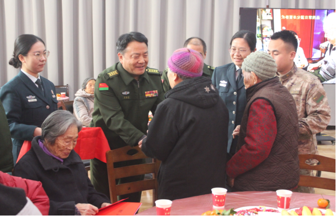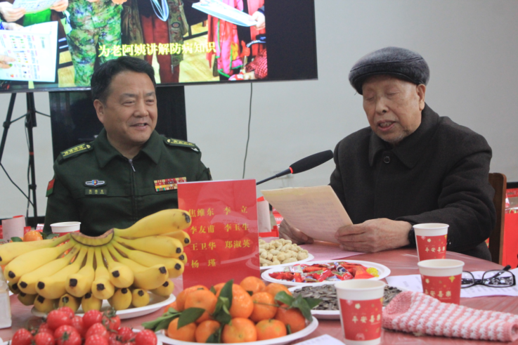 軍分區(qū)焦政委向全體離休干部、遺孀表達(dá)了節(jié)日祝福和親切問候,焦政委講到:“正是有了你們這一代革命先輩的浴血奮戰(zhàn),才有了我們今天幸福美滿的生活,你們是黨、國家和軍隊的寶貴財富,為你們服務(wù)保障是干休所工作人員義不容辭的責(zé)任,看到你們健康快樂,我們也很開心”。焦政委還向參加團拜會的離休干部、遺孀發(fā)放了慰問金、慰問信,轉(zhuǎn)達(dá)了中央軍委國防動員部、省軍區(qū)和軍分區(qū)黨委對離休干部、遺孀的深切關(guān)懷和美好祝愿。