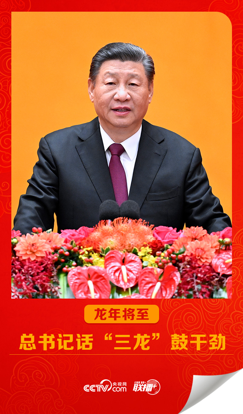 總書記用龍馬精神、龍騰虎躍、魚躍龍門三個(gè)意韻十足的詞語,為我們新的一年送祝福、鼓干勁,激勵(lì)我們?yōu)閺?qiáng)國建設(shè)、民族復(fù)興自強(qiáng)不息、奮斗進(jìn)取。