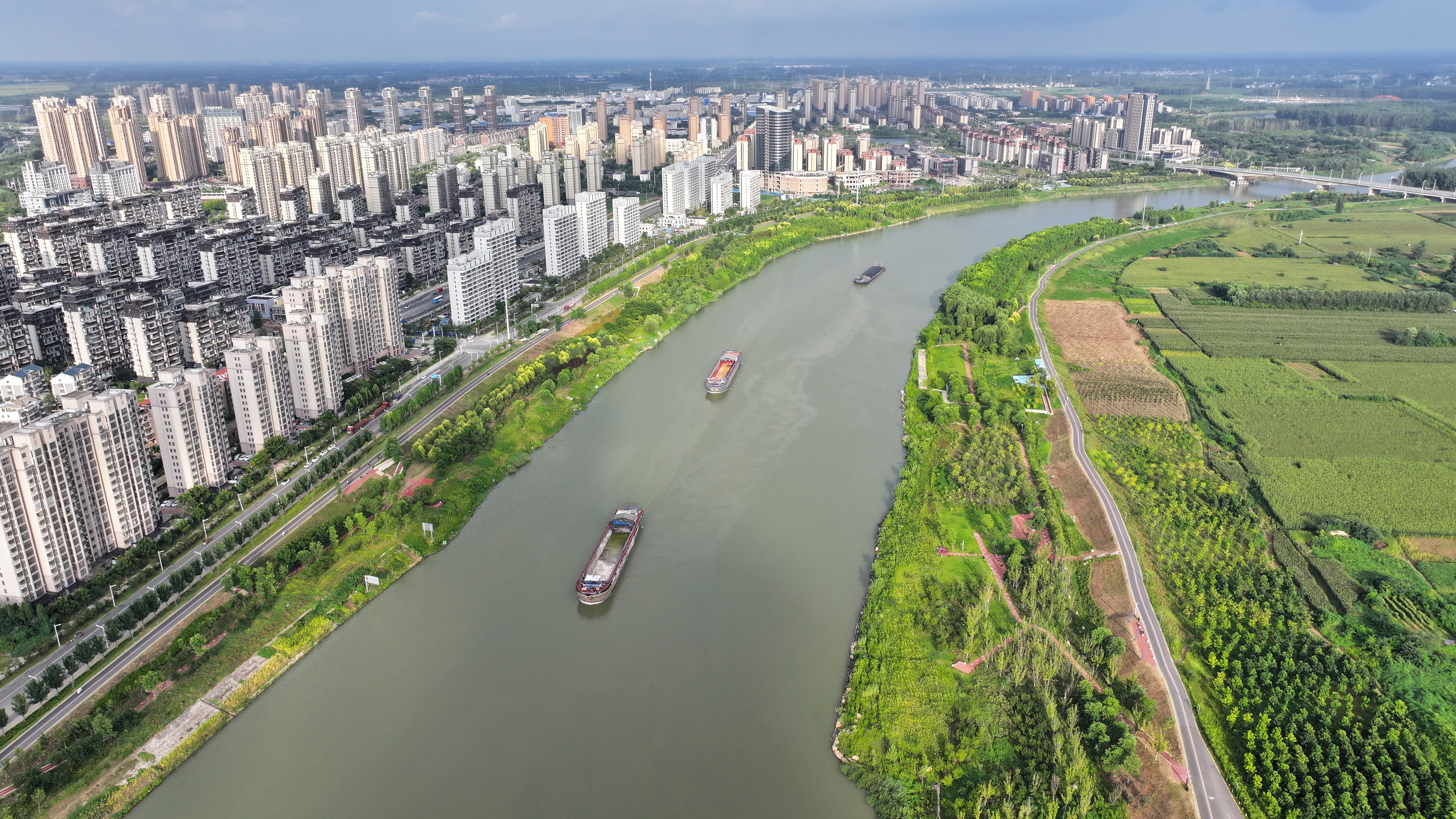△ 2023年8月21日,安徽阜陽(yáng),初秋時(shí)節(jié),界首城市建設(shè)與沙潁河水系、橋梁和綠植相映襯,構(gòu)成一幅生態(tài)宜居的美麗畫(huà)卷。