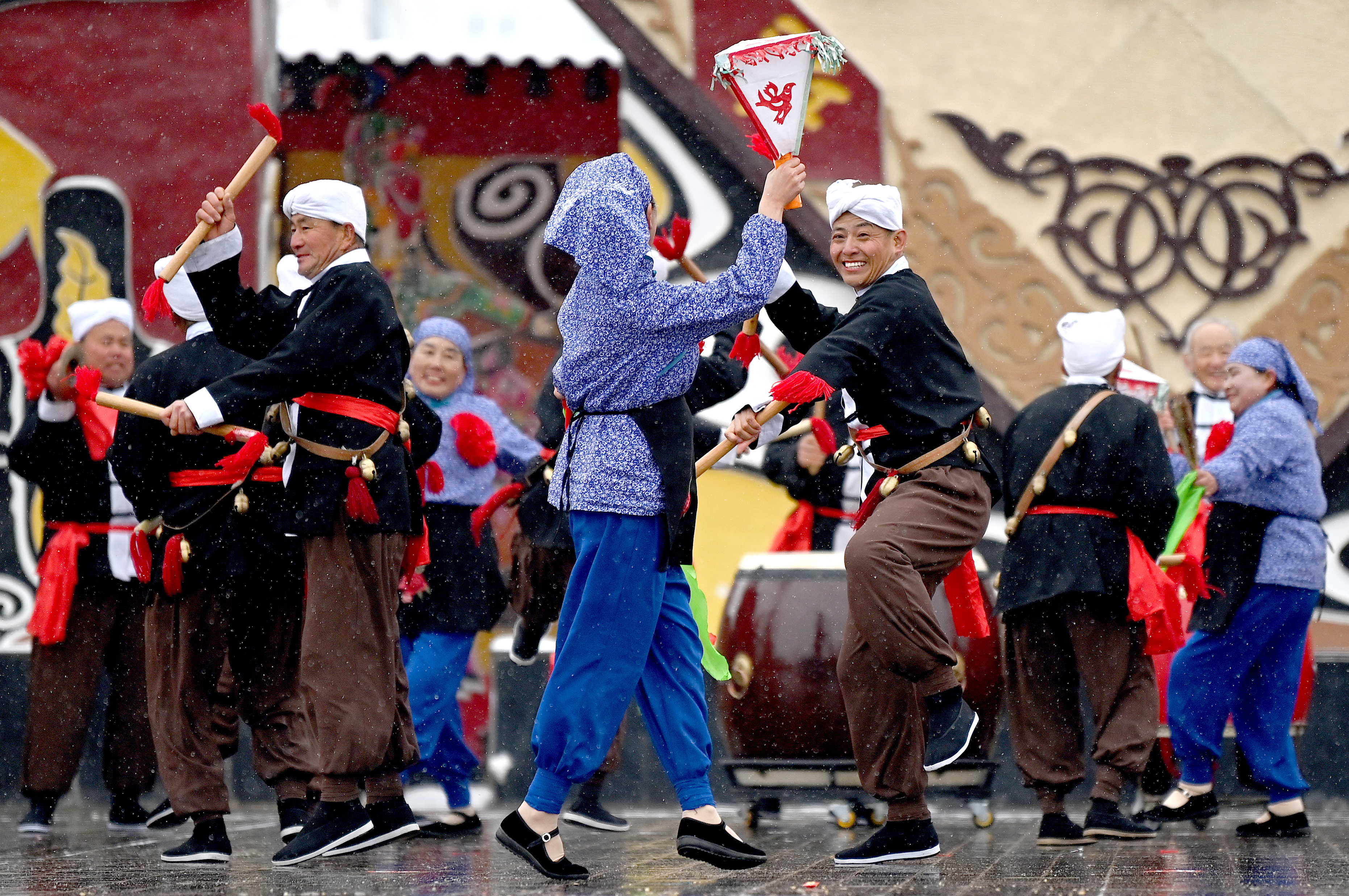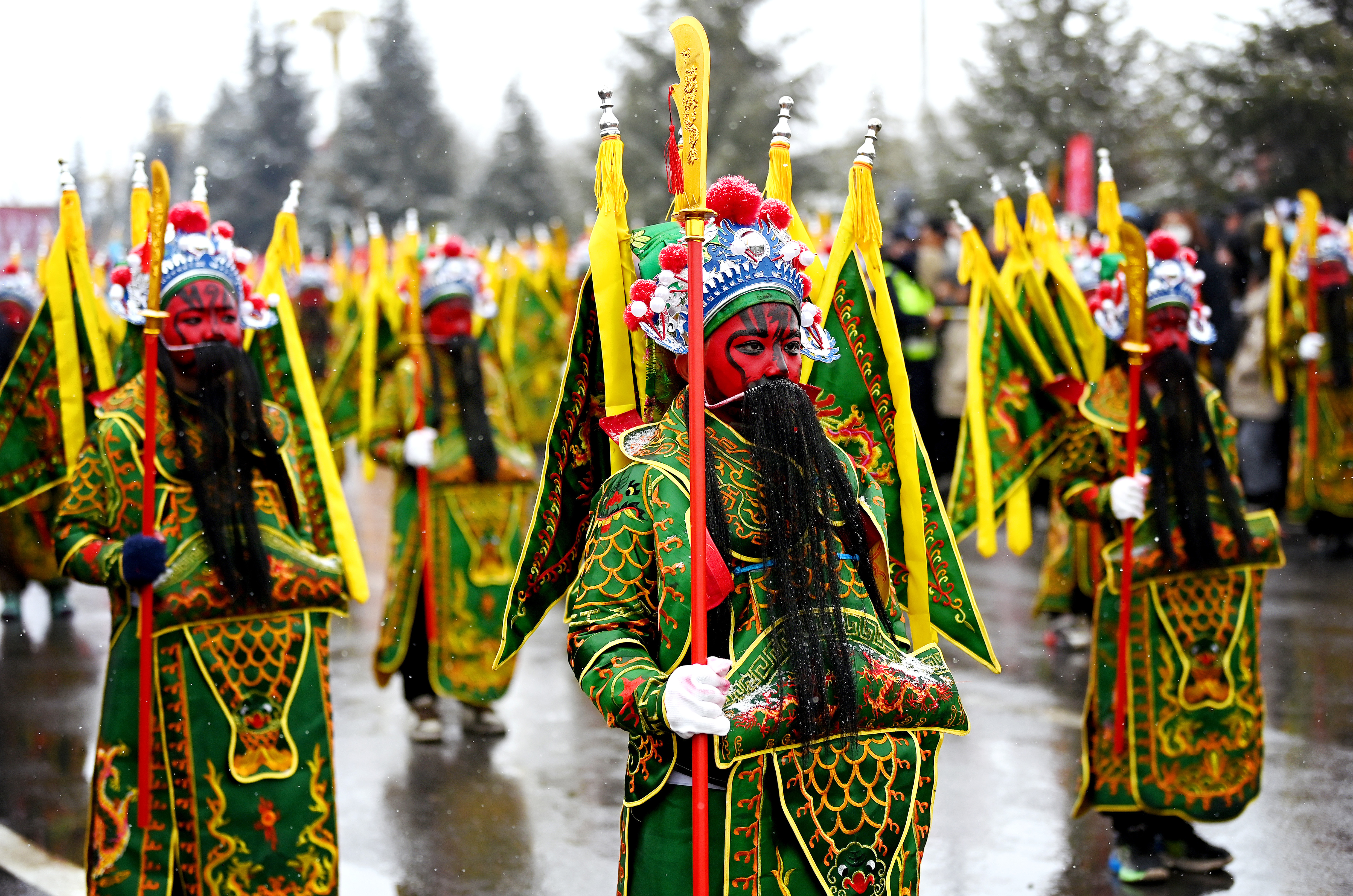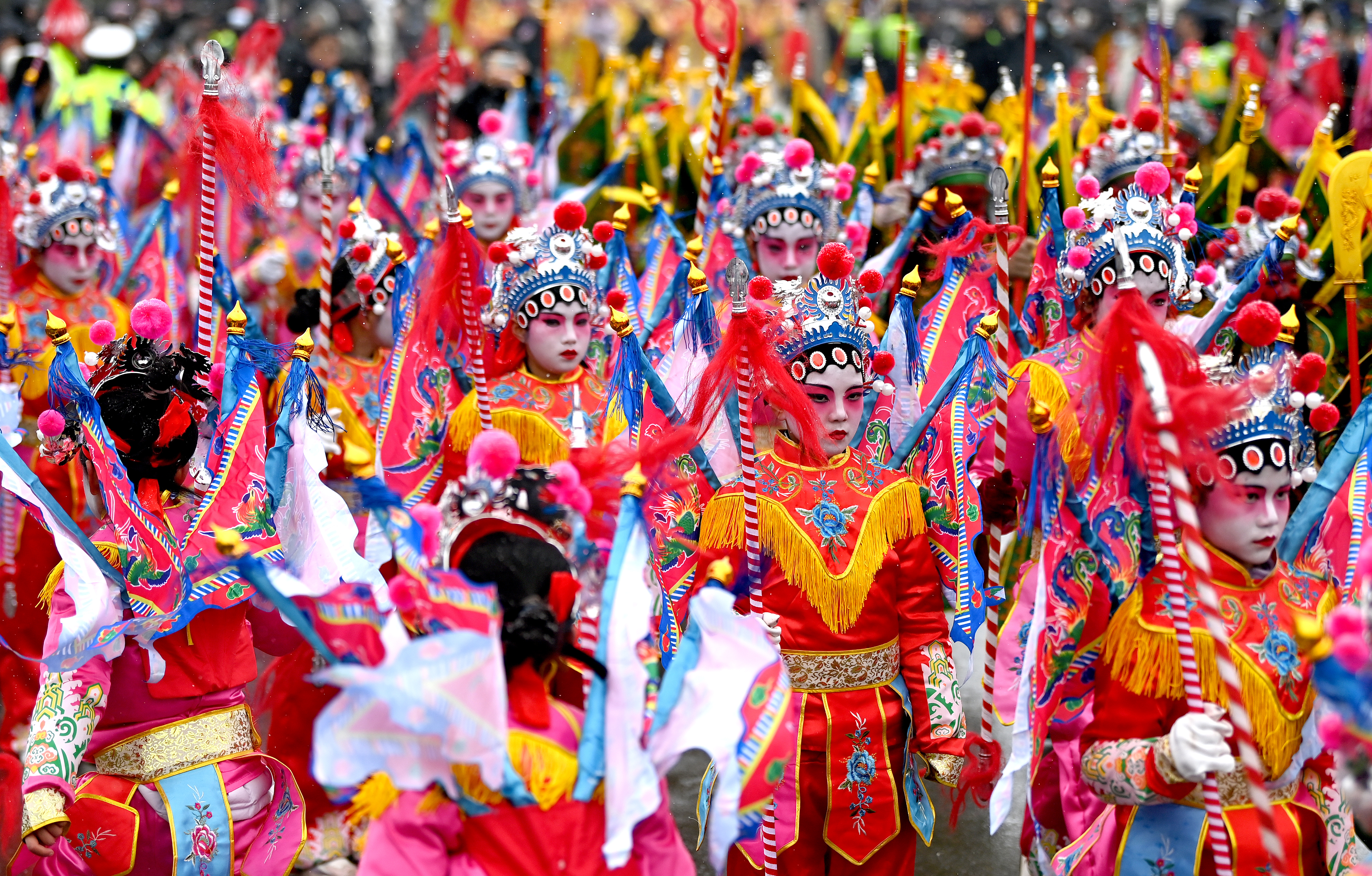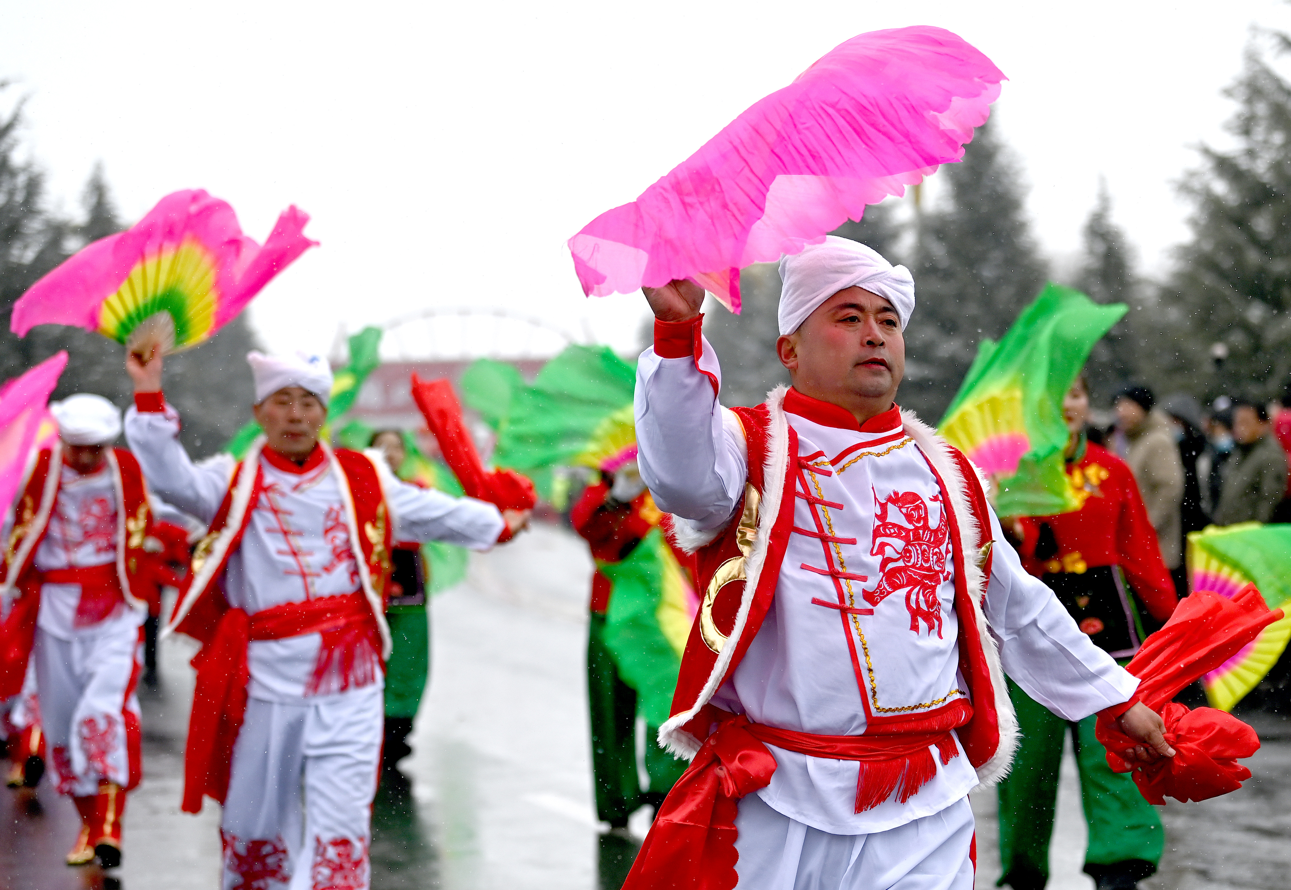 當(dāng)日是農(nóng)歷正月十三,來(lái)自陜西各地市的民間社火代表隊(duì)齊聚陜西隴縣,進(jìn)行社火展演及巡游活動(dòng)。在陜西,每年春節(jié)期間人們紛紛裝扮社火,走鄉(xiāng)串戶,進(jìn)行拜年迎春游演。