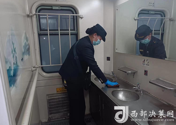 途中,深圳五組的值班職工在列車長的布置指導(dǎo)下,利用停站與停站之間長大區(qū)段,齊心協(xié)力地對(duì)這趟列車進(jìn)行了一次全面的衛(wèi)生清理維護(hù)。列車長在班前會(huì)上,針對(duì)列車不同部位的工作進(jìn)行了詳細(xì)的分工,從列車洗臉間,衛(wèi)生間,廁所,通過臺(tái),電茶爐等等都有專人負(fù)責(zé)。盡管運(yùn)行途中清理維護(hù)車內(nèi)衛(wèi)生有些難度,但這些列車員們并沒有退縮,用他們的作業(yè)標(biāo)準(zhǔn)立即投入到緊張而有序的常態(tài)化衛(wèi)生清理工作中。