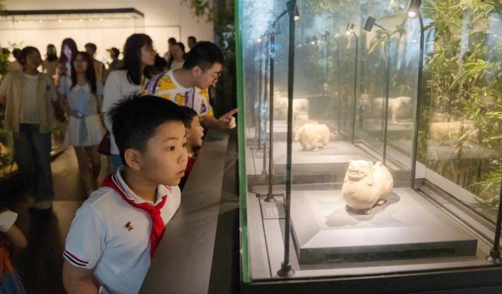 踏入博物館,從東晉的俑群、南朝的青瓷蓮花尊中,觀眾能感受到歷史的溫度;當(dāng)志愿者們聲情并茂地講述1000多年前的歷史時,觀眾也被帶入到遙遠(yuǎn)的時空隧道中,與嵇康飲酒,與王羲之對話。