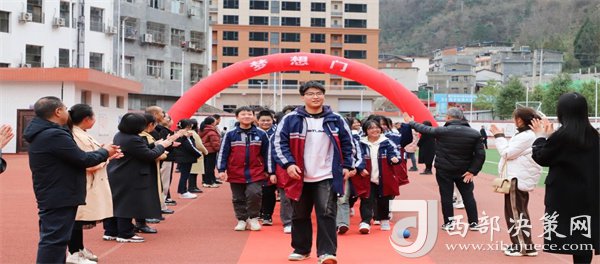 最后,全體學(xué)生跨過寓意著跨越夢(mèng)想、邁向成功的“夢(mèng)想門”“成功門”,大家深知,只有付出辛勤的努力和汗水,才能跨越這道門檻,實(shí)現(xiàn)自己的夢(mèng)想。