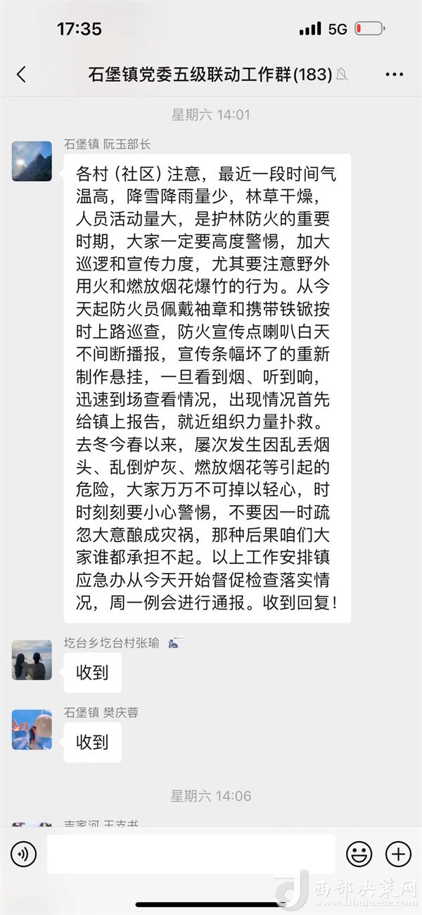 強化責任落實。始終將森林草原防滅火工作放在首位,不定期召開森林草原防滅火專題會議 ,認真學習傳達各級森林草原防滅火工作會議精神和森林草原防滅火知識、相關規(guī)章制度,健全完善森林草原防滅火工作預案,明確鎮(zhèn)村職責分工,嚴格落實包保責任制度,充分發(fā)揮各級林長作用,實行鄉(xiāng)鎮(zhèn)干部包村、村干部包組、組干部包戶、護林員包山頭的森林草原防滅火“五包”責任制,層層落實防火責任。