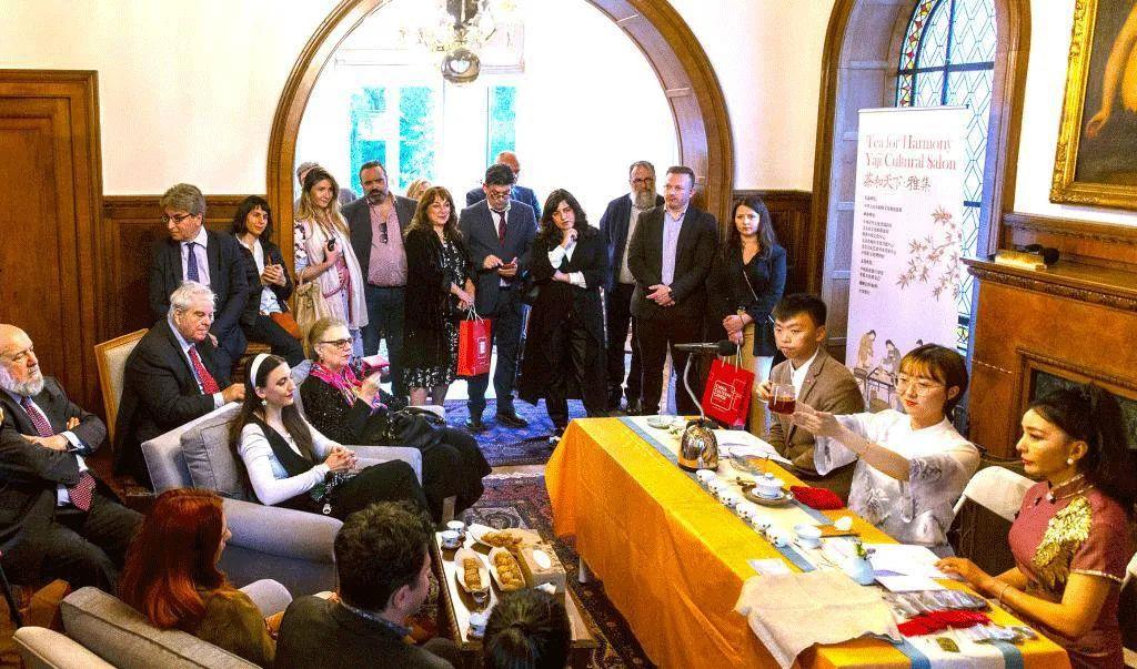 △2023年5月,希臘雅典,人們觀看中國茶藝表演。