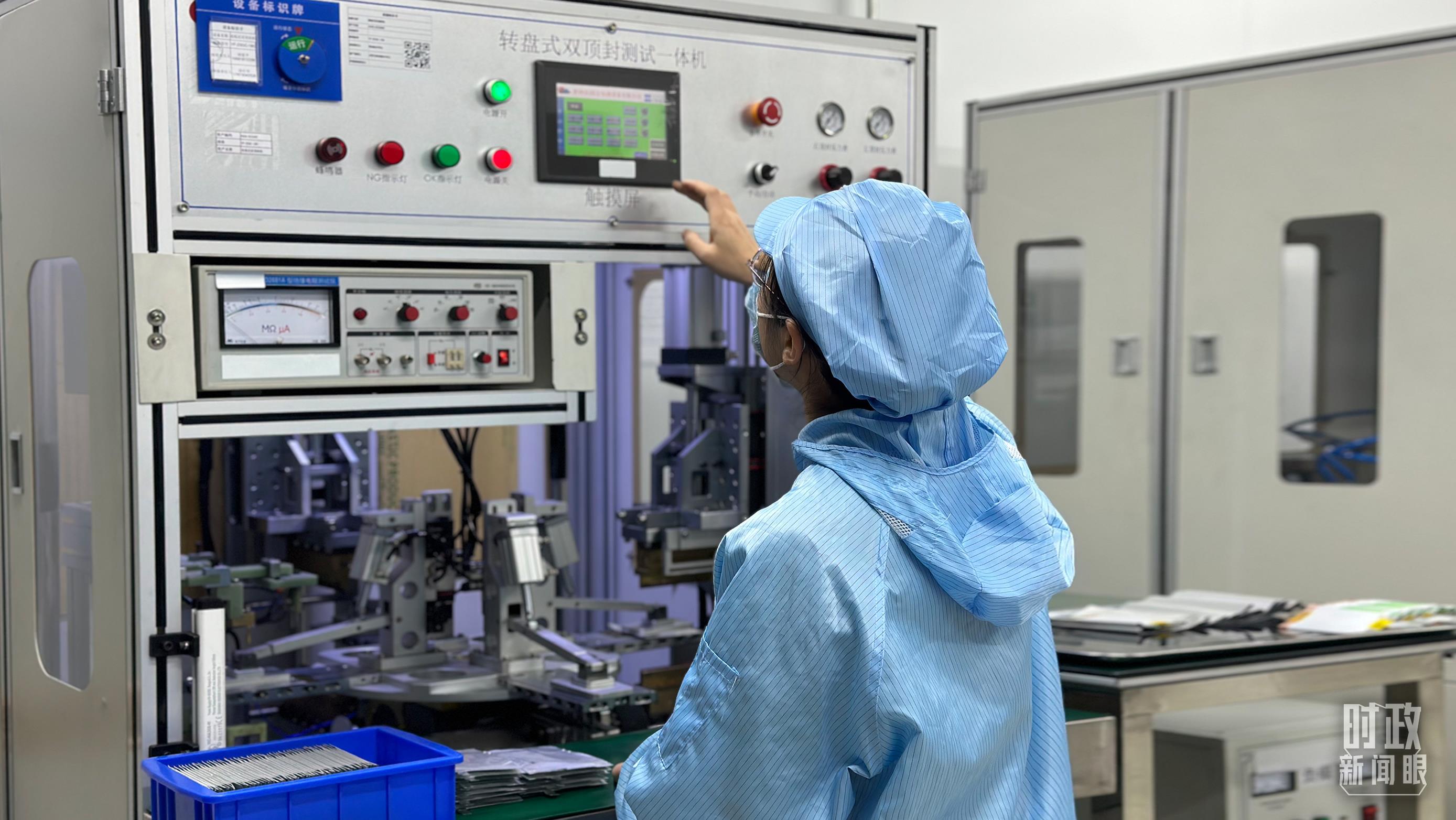 △企業(yè)電池技術中心內,員工正在進行電池封裝。(總臺央視記者盧心雨拍攝)