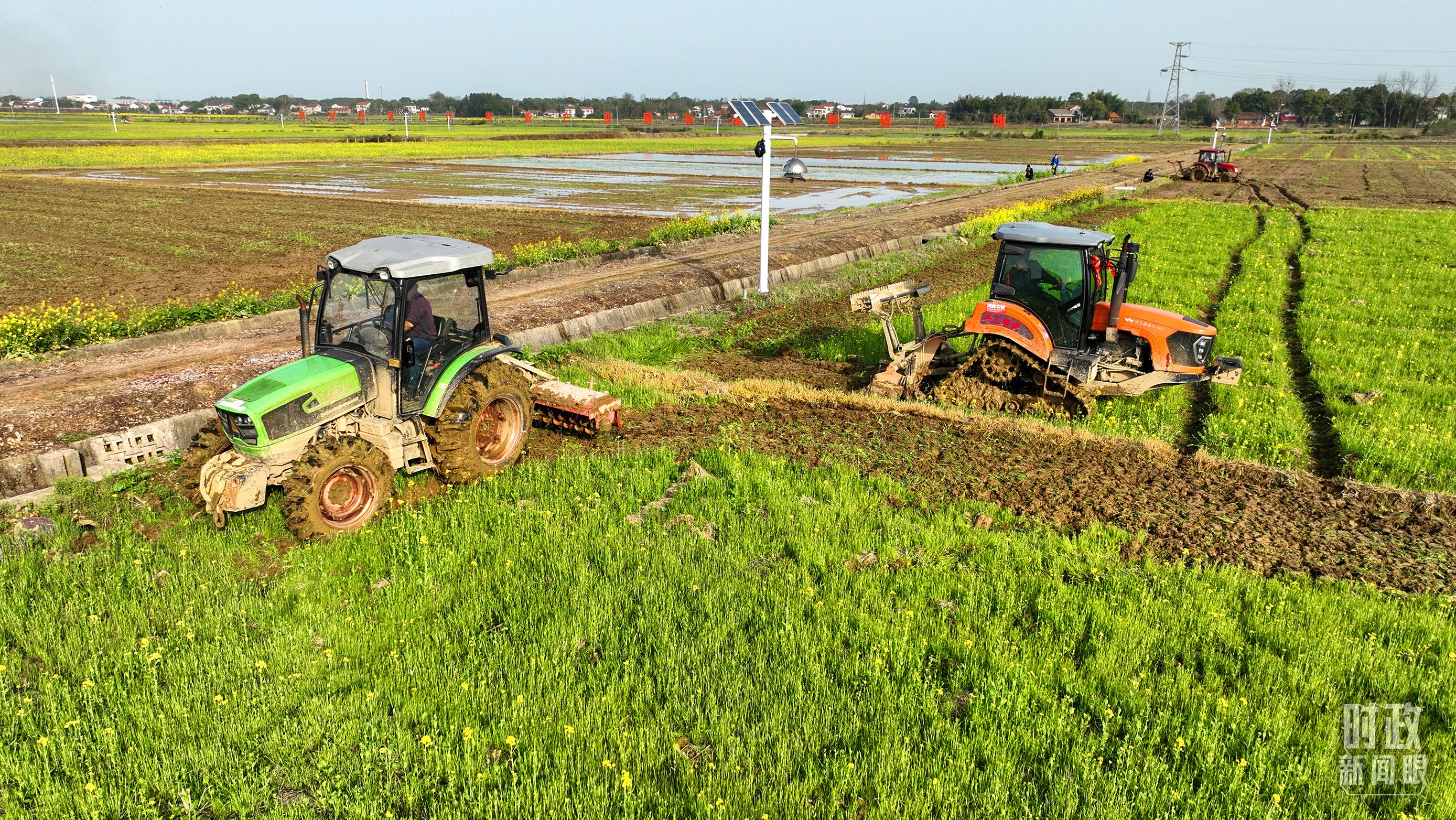 △位于港中坪村的糧食生產(chǎn)萬畝綜合示范片區(qū),春耕備耕生產(chǎn)繁忙。(總臺央廣記者潘毅拍攝)
