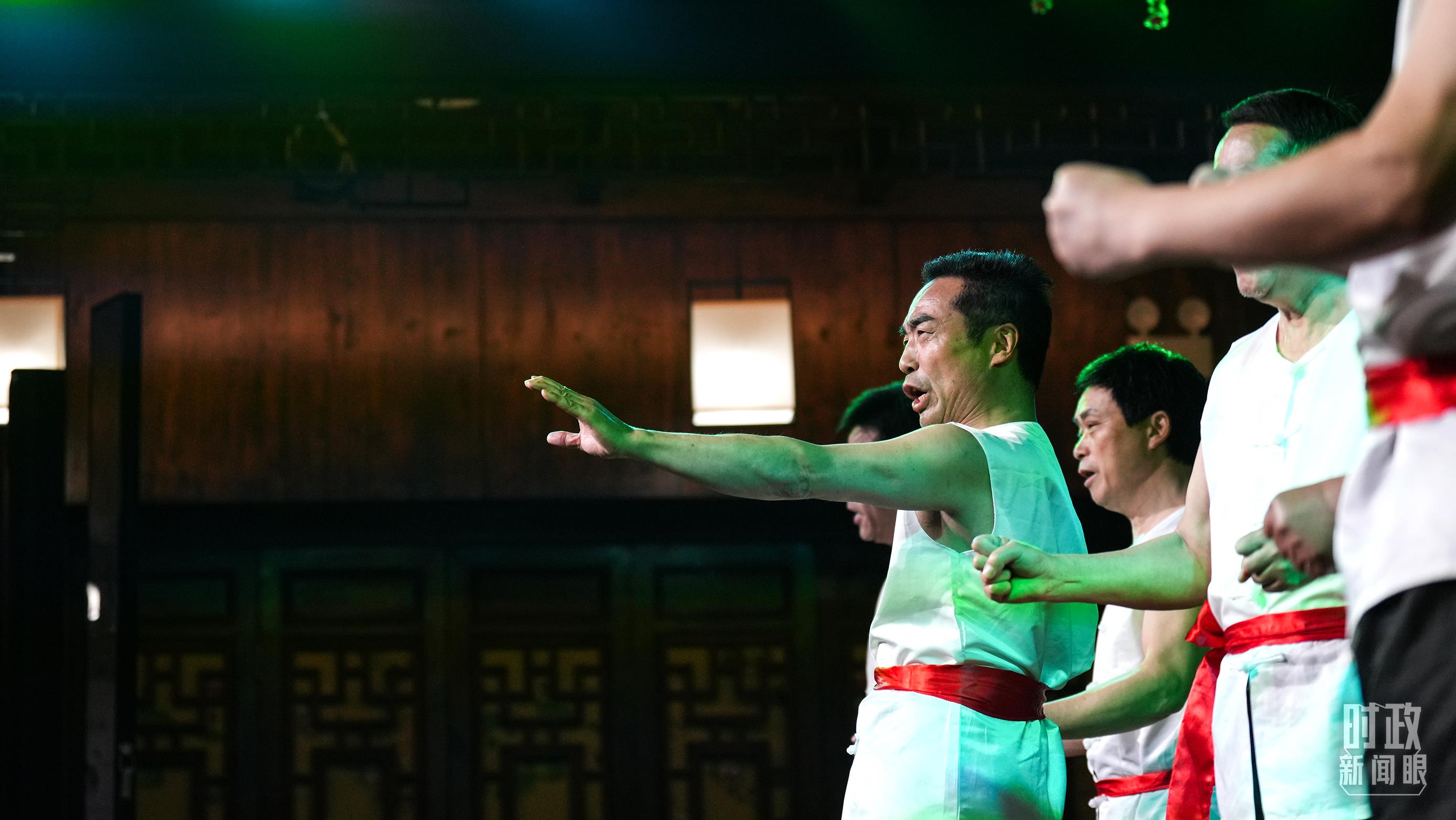 △常德河街,鴛鴦走馬樓上演常德高腔《穆桂英掛帥》和澧水船工號子。(總臺央視記者許永松、國廣記者李晉拍攝)