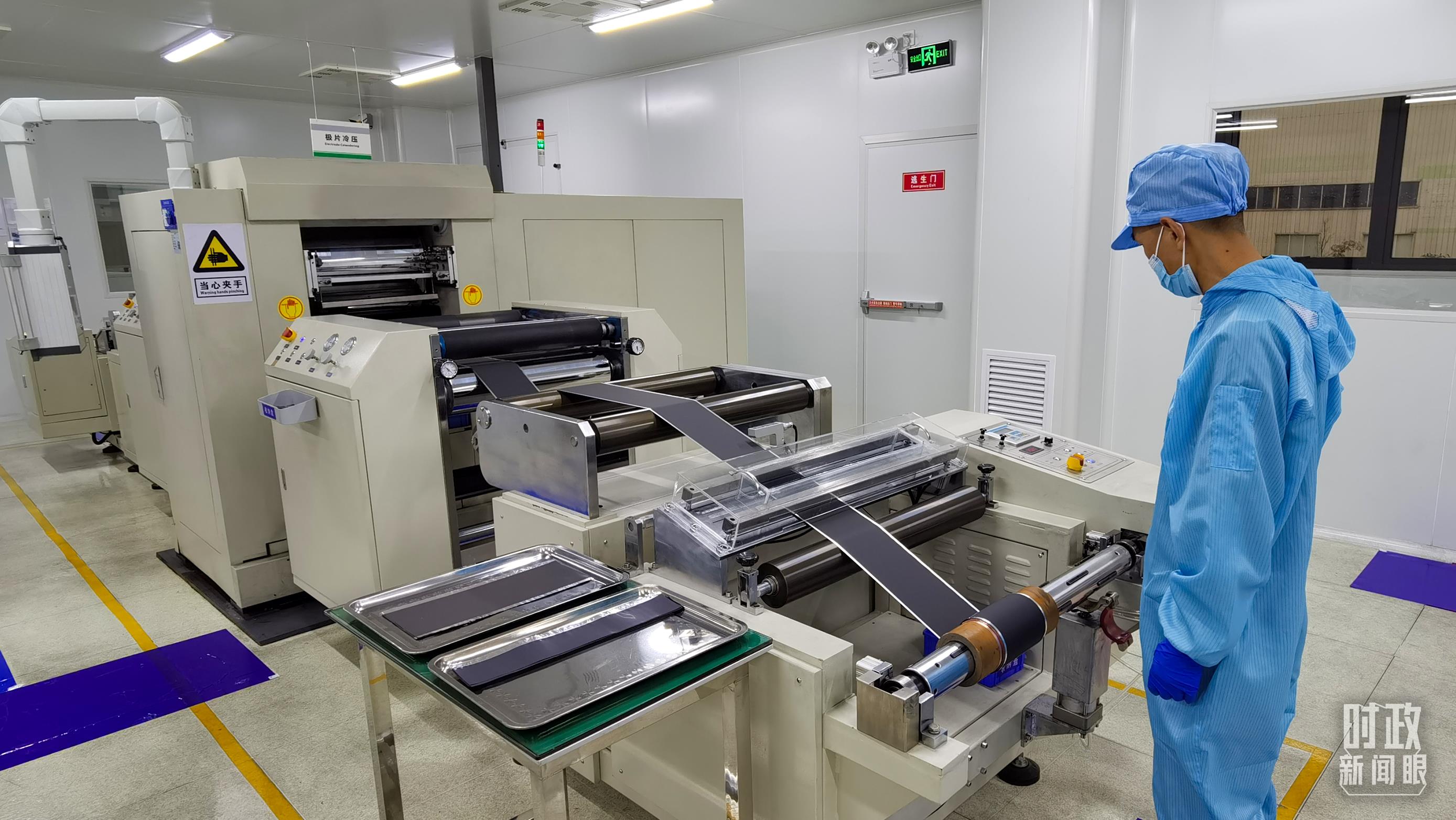 △這是電池生產(chǎn)的極片冷壓操作車間。(總臺央視記者郭鴻拍攝)