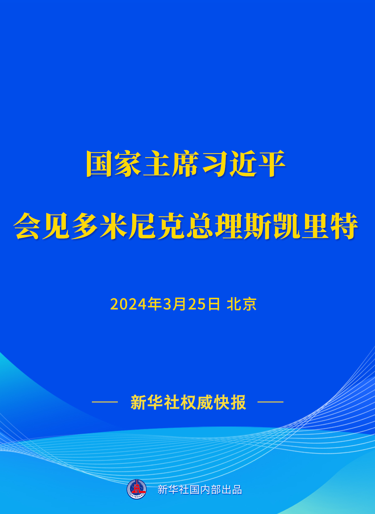 3月25日下午,國(guó)家主席習(xí)近平在人民大會(huì)堂會(huì)見(jiàn)來(lái)華進(jìn)行正式訪問(wèn)的多米尼克總理斯凱里特。